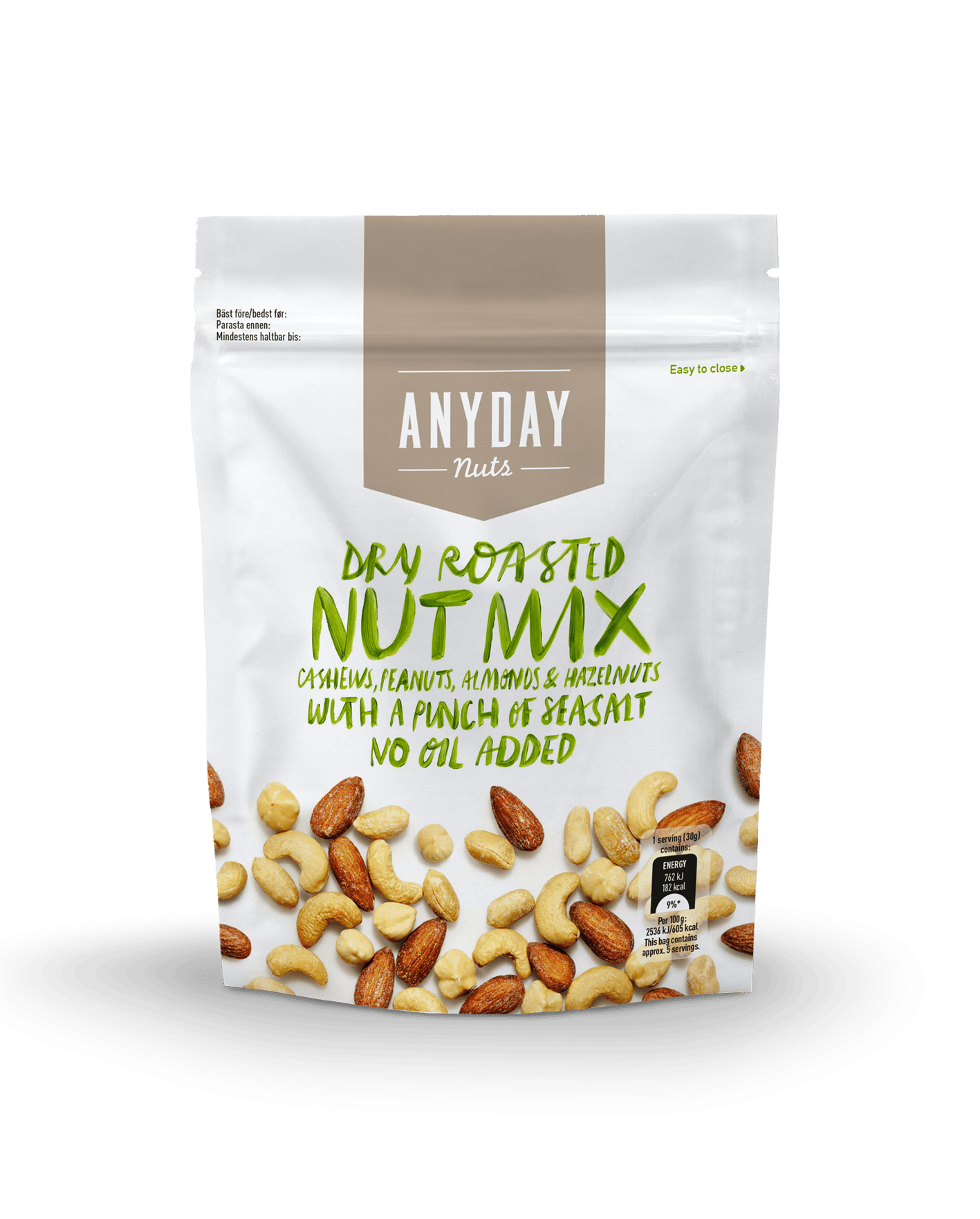 Forkæl dig selv eller dem du holder af med denne pose Dry Roasted Nut Mix fra Anyday Nuts.