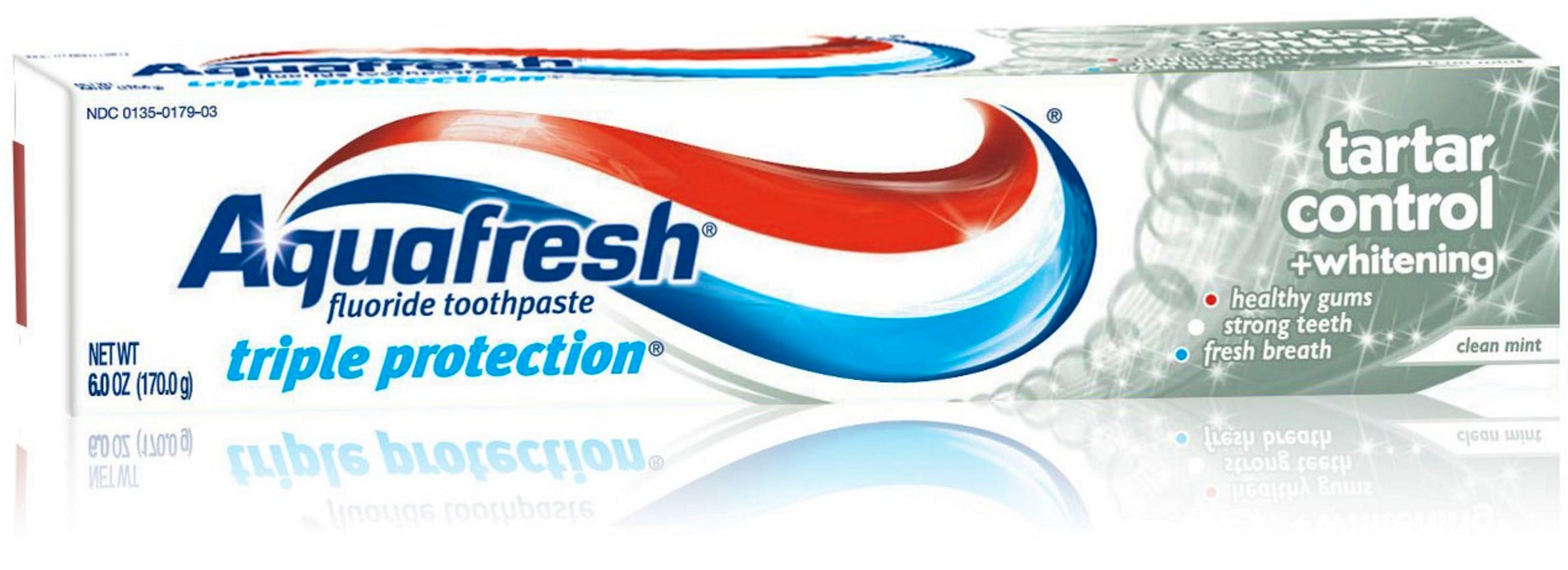 Aquafresh Triple Protection Tartar Control er en forfriskende tandpasta med mint smag.
