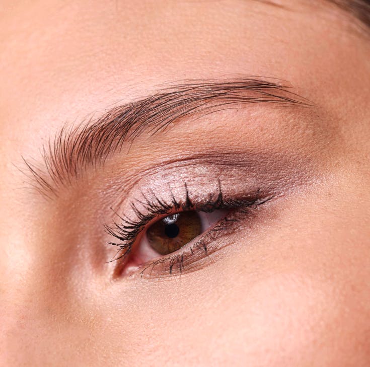 Påfør de valgte øjenskygger på øjenlågene, enten med en øjenskyggepensel eller den medfølgende øjenskyggeapplikator. Ton for et blødt resultat.