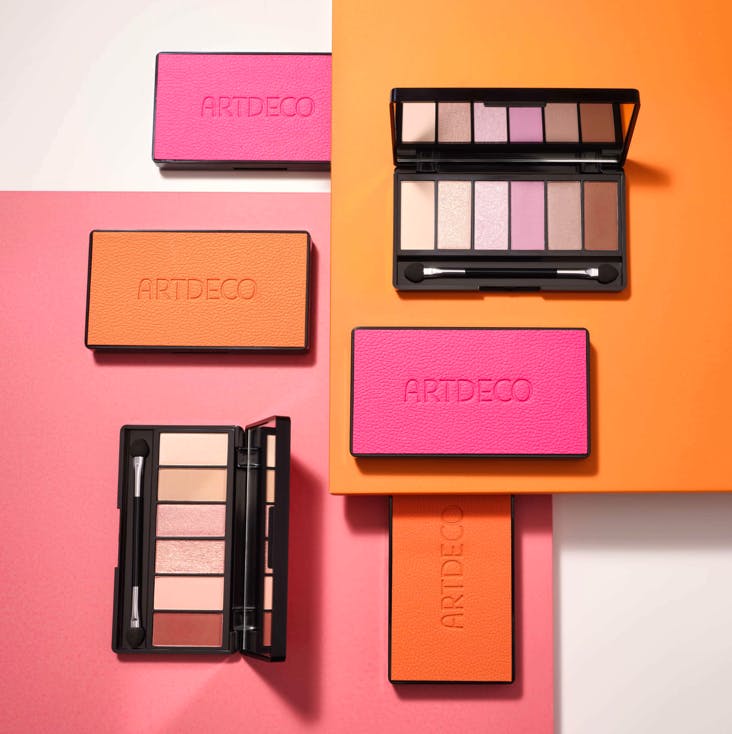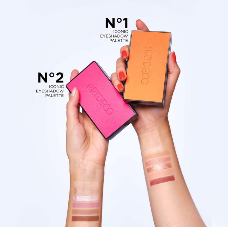 Artdeco Iconic Eyeshadow Palette er en øjenskyggepalette med seks perfekt koordinerede farver med forskellige finish - en metallisk, tre matte og to perlemorsfunklende - som giver mulighed for at skabe mange forskellige hverdags- og festlooks. Øjenskyggerne giver intens farve, har høj dækkeevne og en levende finish. Deres bløde tekstur gør dem nemme at tone, og de efterlader en smuk, silkeagtig finish. Påfør skyggerne enkeltvis eller kombiner dem - med denne palette er der ingen grænser!