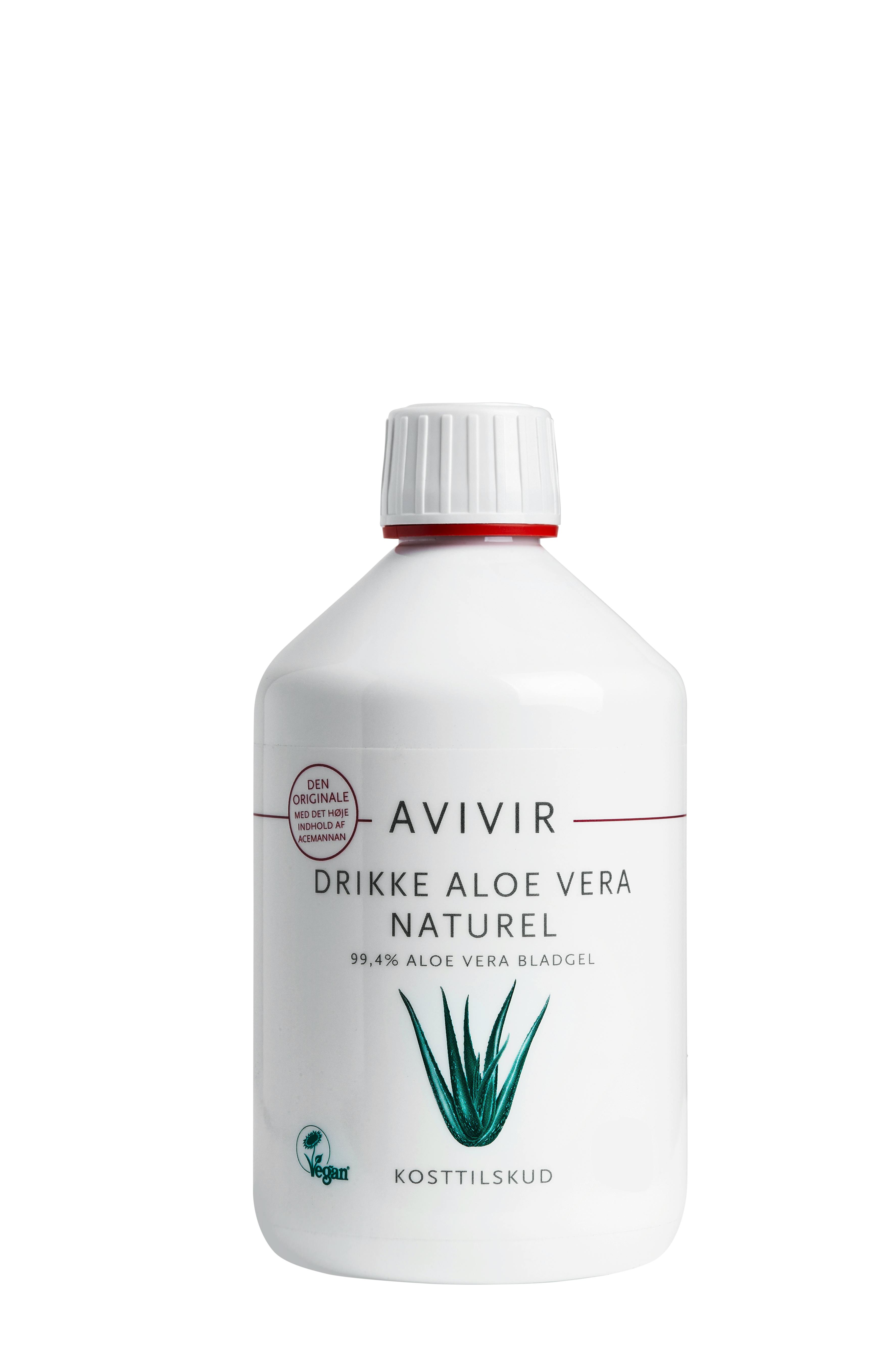 Aloe Vera bladgel (Aloe Vera L.) 99,4%.Tilsætningsstoffer:Konserveringsmidler: Natriumbenzoat, kaliumsorbat.Surhedsregulerende middel: Citronsyre.AVIVIR er den originale Drikke Aloe Vera med 99,4 ACTIValoe®, som er udvundet af bladgelen fra friske Aloe Vera planter (Aloe Vera L. også kaldet Aloe Barbadensis M.) og dyrket uden anvendelse af sprøjtemidler eller kunstgødning.Drikke Aloe Vera indeholder blot 0,3% tilsætningsstoffer – heriblandt antioxidanter, surhedsregulerende middel samt konserveringsmiddel.Konserveringsmidlet sikrer, at Aloe Vera’en ikke bliver ødelagt af bakterier eller svamp efter åbning. Hvis det ikke var konserveret, ville vi ikke turde drikke det efter en uge fra åbning.AVIVIR Aloe Vera er noget helt særligt:En serie baseret på et højt indhold af økologisk ACTIValoe®