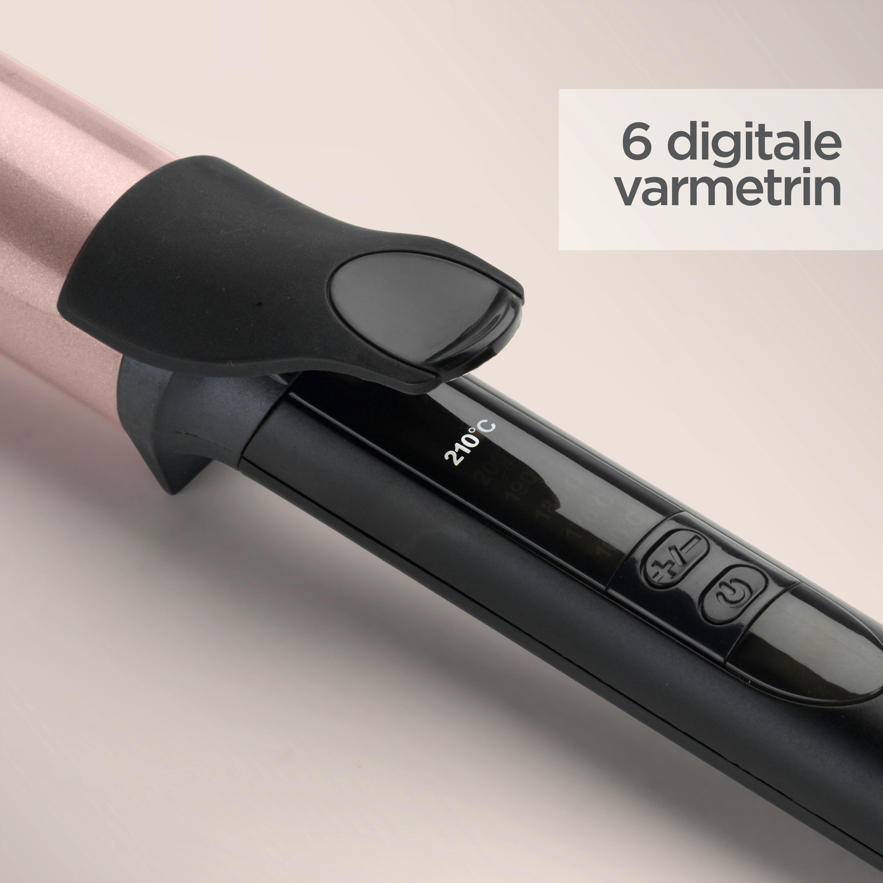 32 mm Curling Tong fra BaByliss er et professionelt krøllejern, der er designet til at skabe veldefinerede krøller. Med dens kvarts-keramiske tang og nemme greb kan du nemt skabe holdbare og tætte krøller med et skinnende finish. Den ekstra lange tang gør den perfekt til at krølle længere hår. Med 6 digitale varmeindstillinger op til 210°C og det avancerede Advanced Ceramics™ varmesystem kan du opnå en konstant høj varme, der gør stylingen hurtig og nem. Uanset om du ønsker en mere afslappet bølget stil eller stramme krøller, kan du justere varmeindstillingerne fra 160°C til 210°C for at opnå præcis den ønskede stil. 32 mm Curling Tong er også udstyret med en automatisk slukningsfunktion, der sikrer, at den slukker automatisk efter en vis periode uden brug. Den har også en 2,5 meter roterende ledning, der giver dig frihed til at bevæge dig rundt, mens du styler dit hår. Med den medfølgende varmefaste måtte kan du nemt placere krøllejernet på en sikker overflade, når det ikke er i brug. BaByliss giver dig også ekstra tryghed med deres 3 års garanti på dette produkt. Så du kan være sikker på, at du investerer i et kvalitetskrøllejern, der vil give dig smukke krøller i lang tid. Med 32 mm Curling Tong fra BaByliss kan du nemt og professionelt style dit hår og skabe smukke, veldefinerede krøller, der vil få dig til at stråle.