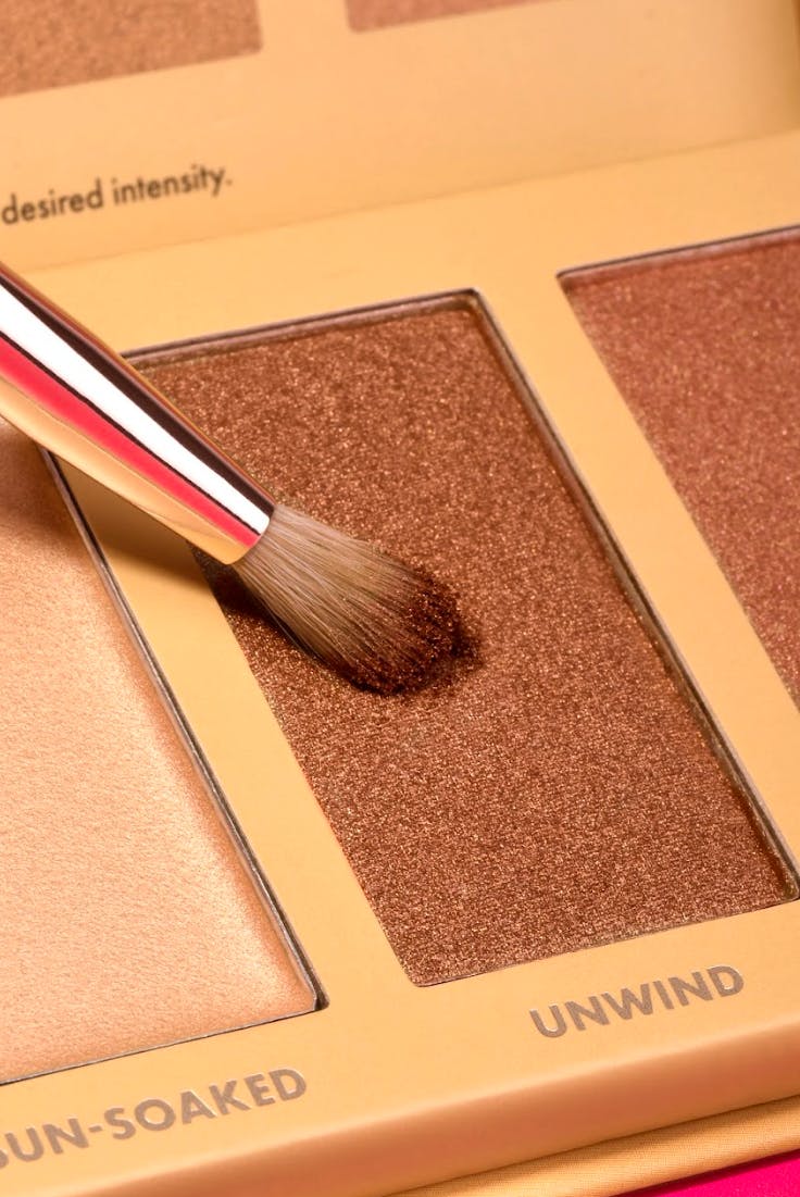 Tridecyl Trimellitate, Mica, Butyrospermum Parkii (Shea) Butter, Coco-Caprylate/Caprate, Octyldodecanol, Diisostearyl Malate, Polyisobutene, Synthetic Beeswax, Silica, Silica Dimethyl Silylate, Synthetic Fluorphlogopite, Copernicia Cerifera (Carnauba) Wax, Euphorbia Cerifera (Candelilla) Wax, Glyceryl Behenate/Eicosadioate, Phenoxyethanol, Tin Oxide, Helianthus Annuus (Sunflower) Seed Oil, Methicone, Tocopherol, Titanium Dioxide (CI 77891), Iron Oxides (CI 77491, CI 77492, CI 77499). Sun Soaked Ingredients: Tridecyl Trimellitate, Synthetic Fluorphlogopite, Butyrospermum Parkii (Shea) Butter, Mica, Coco-Caprylate/Caprate, Octyldodecanol, Diisostearyl Malate, Polyisobutene, Synthetic Beeswax, Silica, Silica Dimethyl Silylate, Copernicia Cerifera (Carnauba) Wax, Euphorbia Cerifera (Candelilla) Wax, Glyceryl Behenate/Eicosadioate, Phenoxyethanol, Tin Oxide, Helianthus Annuus (Sunflower) Seed Oil, Methicone, Tocopherol, Titanium Dioxide (CI 77891), Iron Oxide (CI 77491). Unwind Ingredients: Mica, Phenyl Trimethicone, Talc, Dimethicone, Diisostearyl Malate, Synthetic Wax, Magnesium Stearate, Calcium Aluminum Borosilicate, Phenoxyethanol, Tin Oxide, Squalane, Tocopheryl Acetate, Ethylhexylglycerin, Titanium Dioxide (CI 77891), Iron Oxides (CI 77491, CI 77492, CI 77499). Plush Ingredients: Mica, Phenyl Trimethicone, Talc, Dimethicone, Diisostearyl Malate, Synthetic Fluorphlogopite, Synthetic Wax, Magnesium Stearate, Phenoxyethanol, Tin Oxide, Squalane, Tocopheryl Acetate, Ethylhexylglycerin, Titanium Dioxide (CI 77891), Iron Oxides (CI 77491, CI 77492, CI 77499).