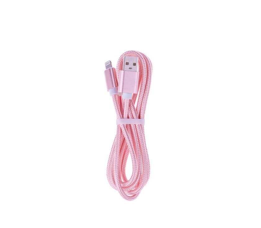 Dette opladningskabel passer til iPhone. Kablet er beklædt med stof, så det er blødere og nemmere at folde pænt sammen. Dette kabel er et godt alternativ til de dyre kabler. Dette er desuden i en fin lyserød farve, der er meget feminin og let genkendelig. Kablet måler 1,5 meter.