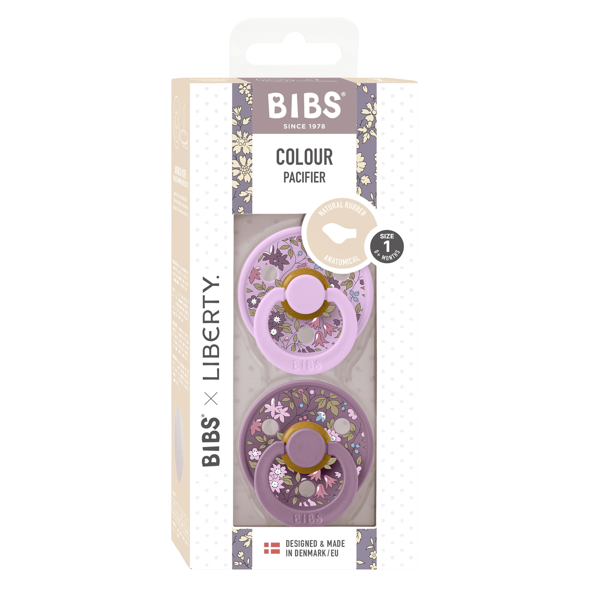 BIBS Liberty Pacifier Colour 2 Pack Chamomile Lawn Latex Size 1 Anatomical Violet Sky Mix
