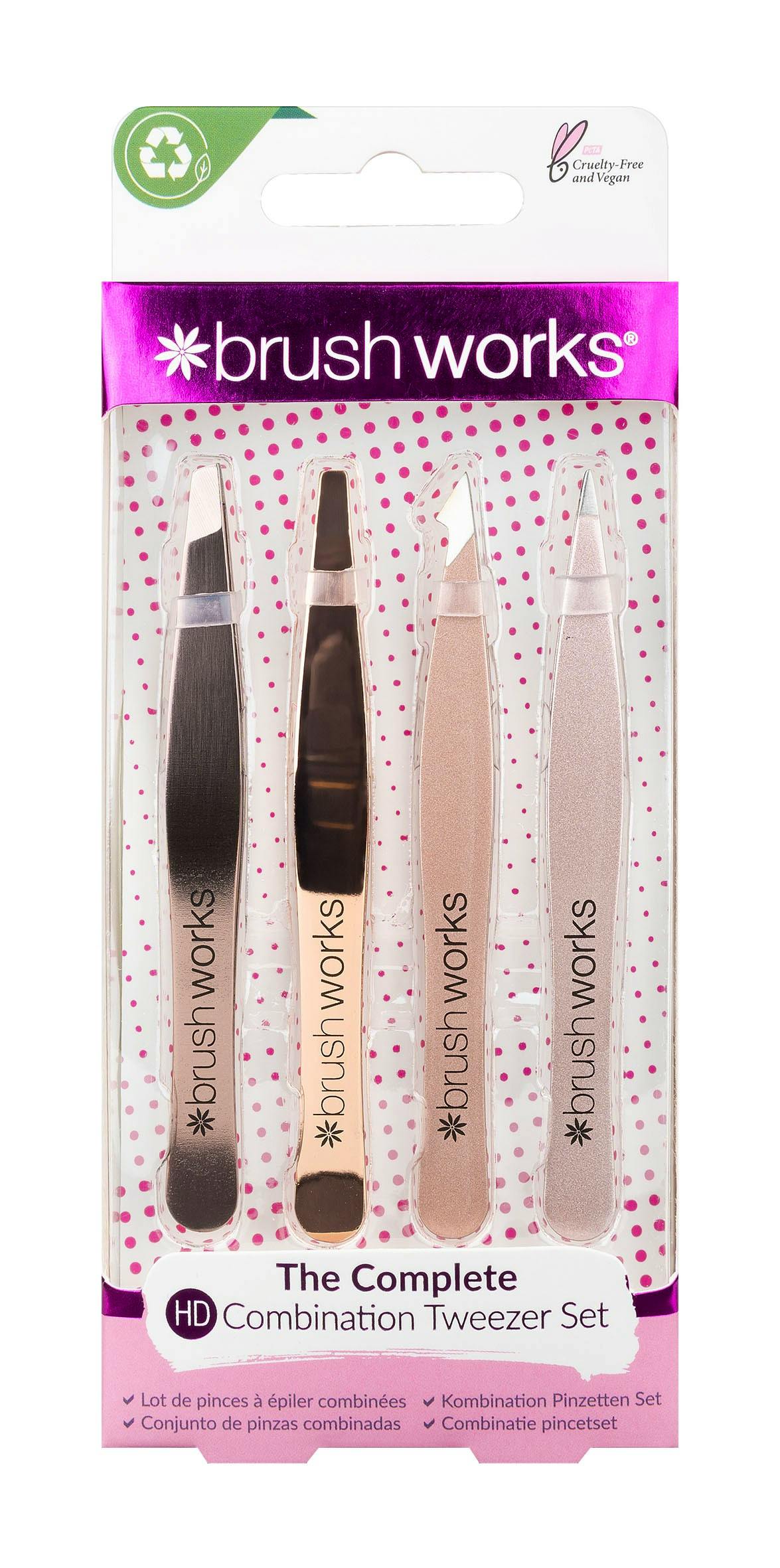 Combination Tweezer Set Gold fra mærket brushworks er et fantastisk værktøj til at opnå perfekte bryn og fjernelse af uønsket ansigtshår.