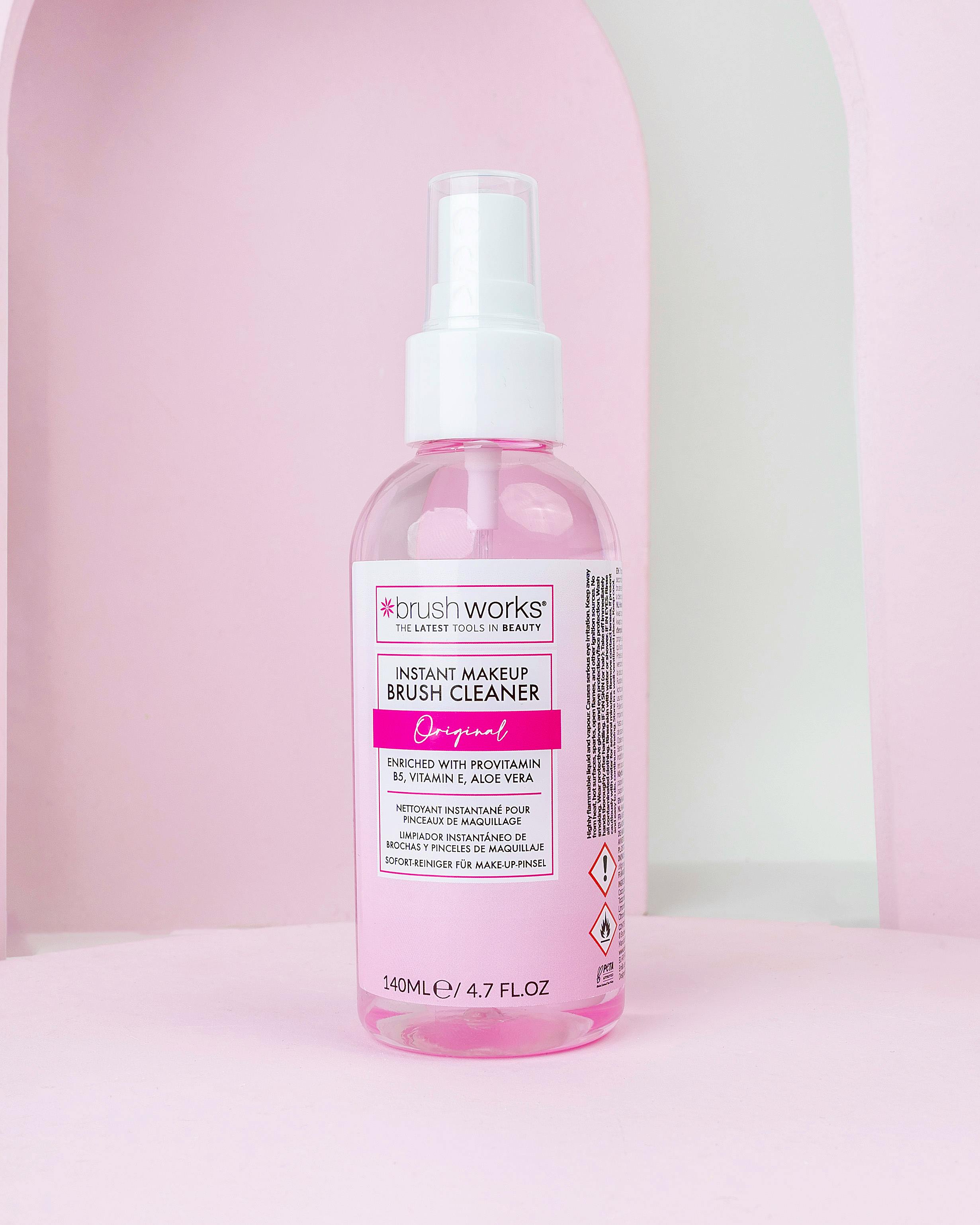Gør rengøringen af dine makeupbørster til en leg med Instant Makeup Brush Cleaner. Denne effektive rengøringsløsning er designet til at fjerne makeuprester og snavs fra dine børster hurtigt og nemt. Med en praktisk størrelse på 140 ml kan du have den stående på badeværelset eller tage den med på farten, så dine børster altid er friske og klar til brug.