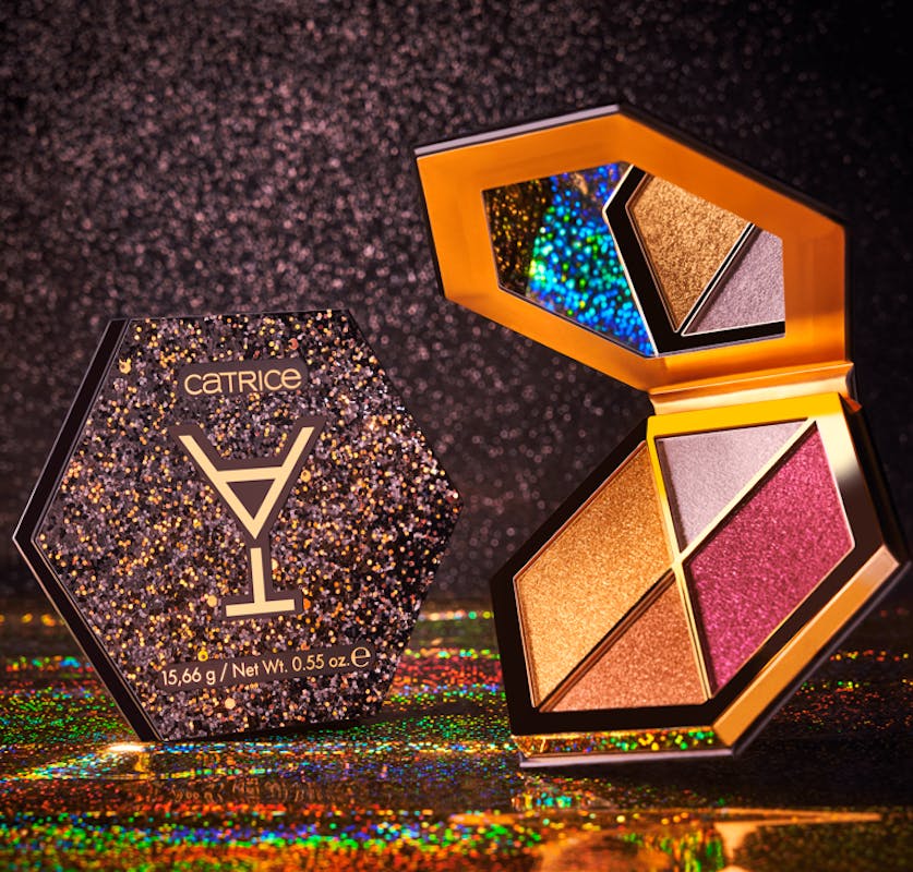 En aften af highlights: ABOUT TONIGHT Highlighter Palette fra Catrice giver den perfekte glød i fire intense, trendy nuancer. Den funklende emballage har et indbygget spejl - det et statement-produkt perfekt til touch-ups under festen.