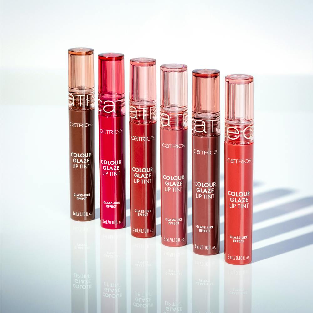 Nyd glansfulde farver med Catrice Colour Glaze Lip Tint 010 Tinted Love i en rosa-neutral nuance, der kombinerer glans og levende farvetoner i et enkelt strøg.