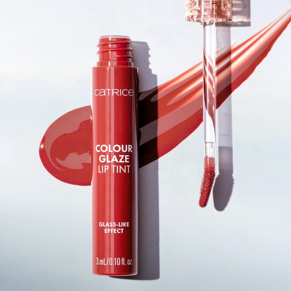 Nyd glansfulde farver med Catrice Colour Glaze Lip Tint 030 In My Cherry Era i en rød nuance med brune undertoner, der kombinerer glans og levende farvetoner i et enkelt strøg.