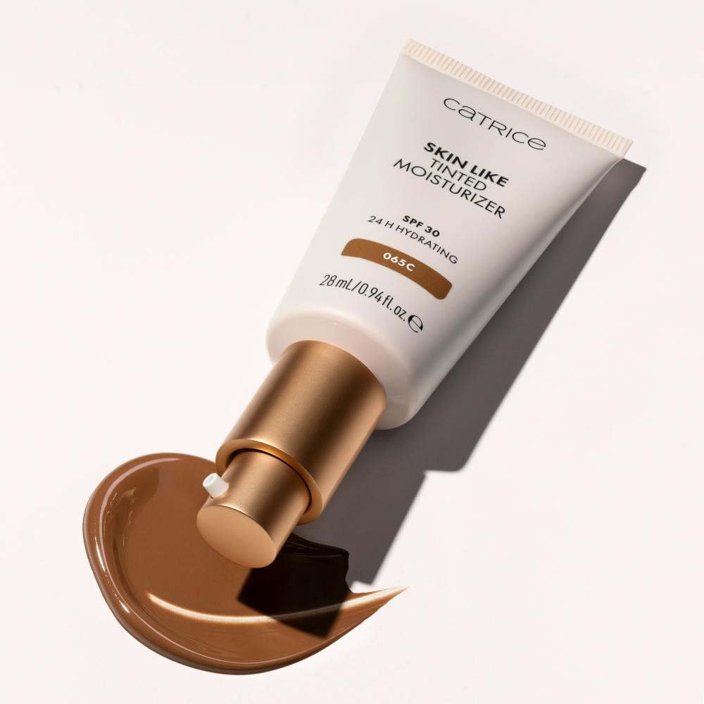 Mød din nye go-to for en naturlig teint hver dag: Catrice Skin Like Tinted Moisturizer 065C i en solbrun nuance med kølige undertoner.