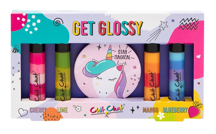 Få en skinnende og glamourøs læbe-look med Get Glossy Lipgloss Gift Set fra Chit Chat.