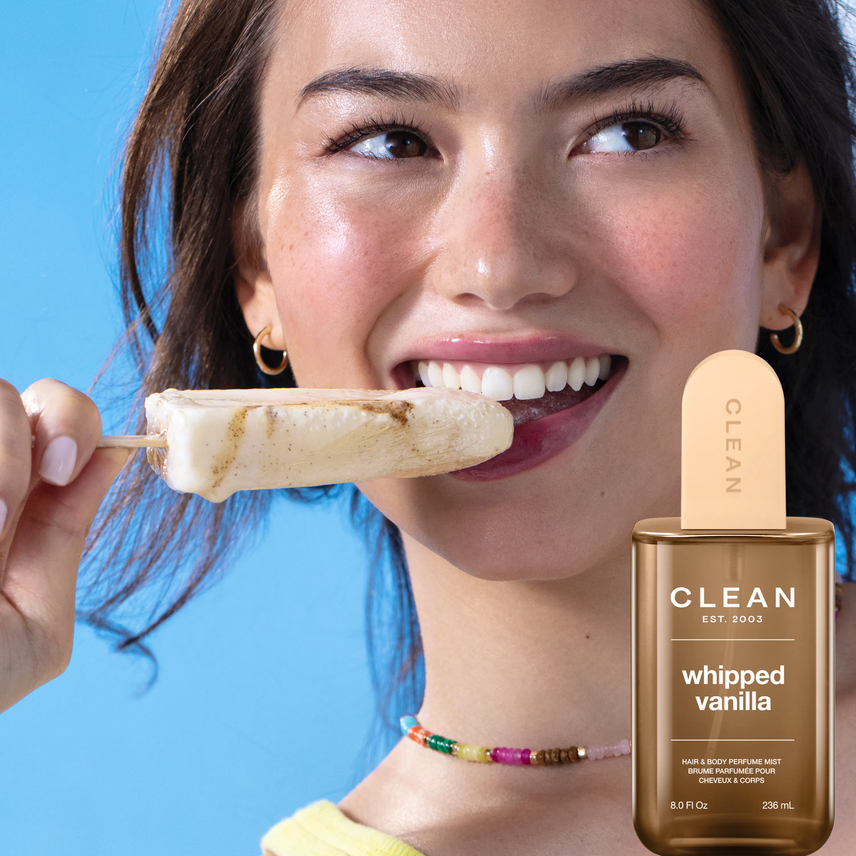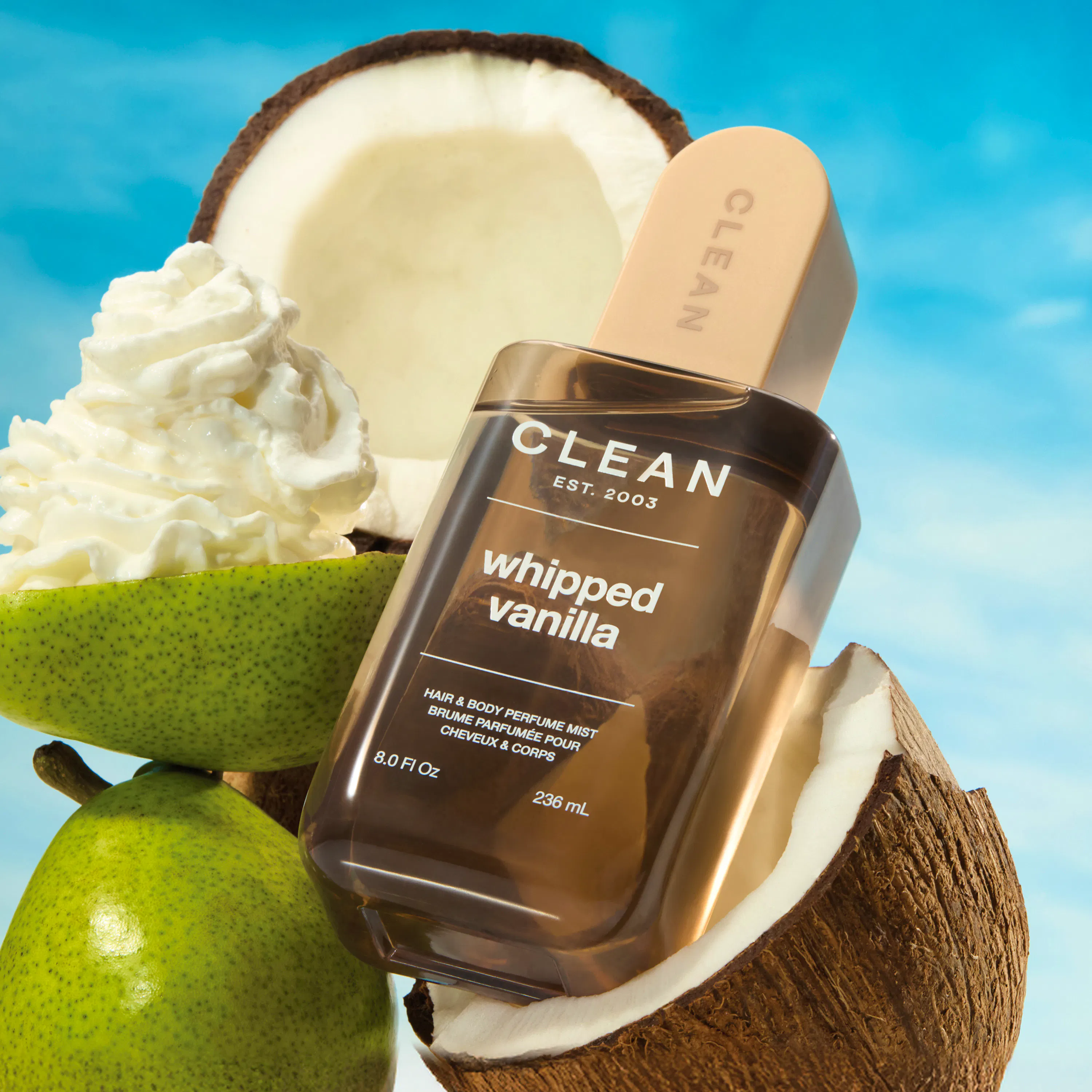 CLEAN Whipped Vanilla Hair & Body Perfume Mist dufter som den blødeste vaniljecreme, du nogensinde har oplevet – luftig, blød og uimodståeligt varm.