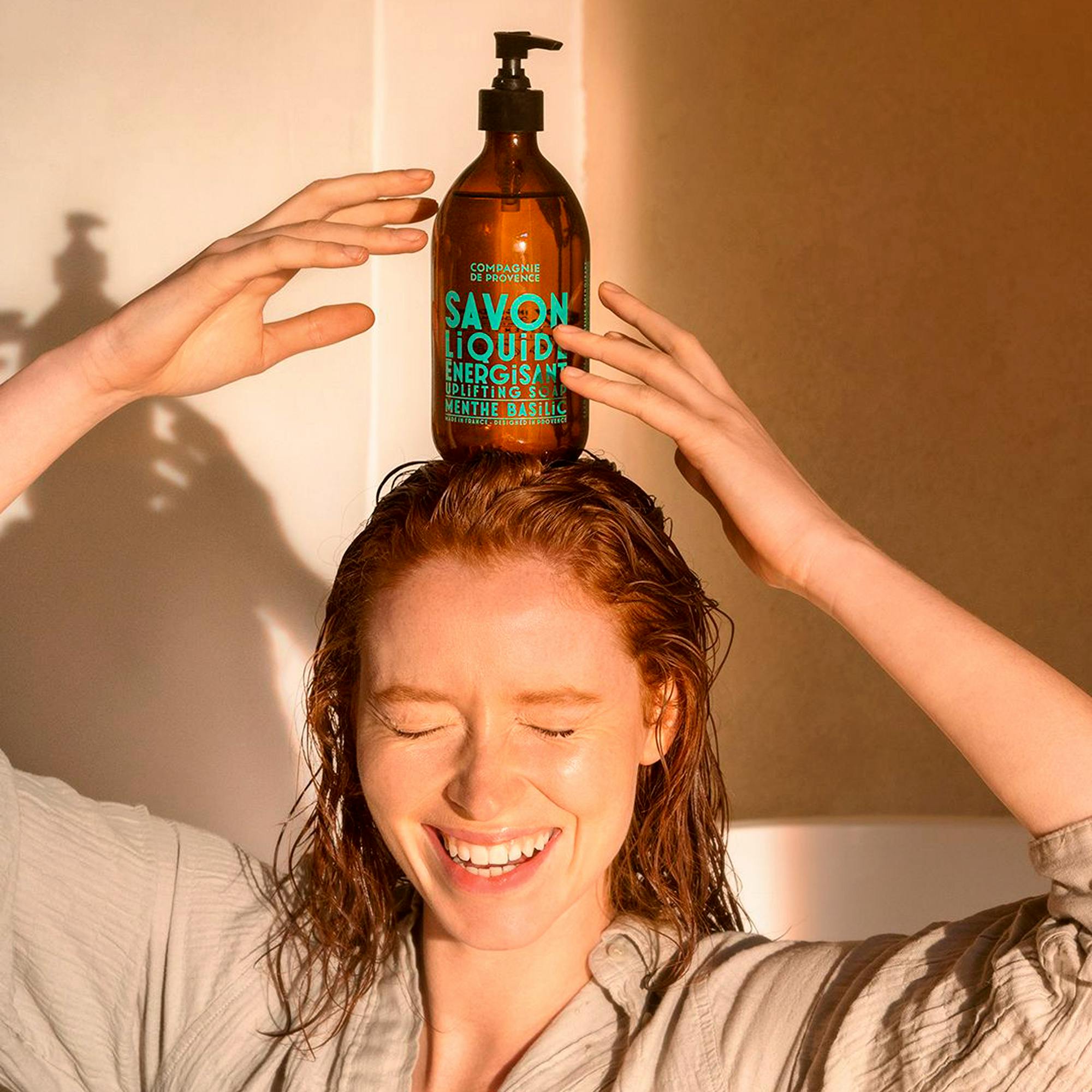 Denne flydende sæbe er formuleret med en rensende base af kokos- og solsikkeolier og forsæbet i en kedel ved hjælp af en traditionel metode, og den afslører en luksuriøs geltekstur, der nænsomt renser hænder og krop. Den er beriget med enestående botaniske olier fra Provence og indeholder en blanding af æteriske olier fra mynte og basilikum med stimulerende egenskaber, der giver energi til sindet.