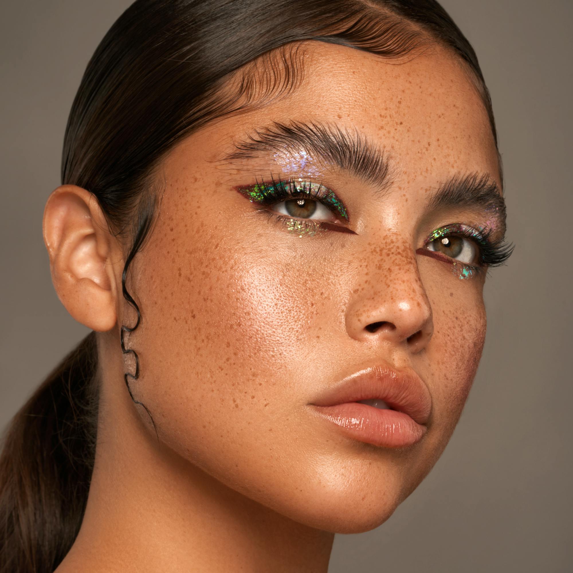Pleje: For at holde dine flakes FRISKE og holdbare, skal du ikke fjerne den sølvfarvede lufttætte forsegling. Giv ethvert skønhedslook et løft med disse lette, nemt anvendelige multi-krom flake toppers. Forvandl øjeblikkeligt dine øjenmakeup-looks med blot et tryk eller et strøg. Som en topper: Brug fingerspidserne til at påføre for en glitrende, knust refleks-effekt. Alene: Brug en flad pensel til at påføre for en hypermetallisk, folieret effekt. Pro tip: Brug alene eller for ekstra intensitet, læg over din yndlings Colorfix, Twin Flames eller øjenskygge. Kan bruges som en selvstændig øjenskygge eller som en topper. Den innovative, selvhærdende, højintense, kølende vandbaserede formel skaber et intenst lysspektrum. Ingen blandingsmedium eller klæbemiddel er nødvendigt. Ingen drys, ingen besvær, kun magiske farveeksplosioner!