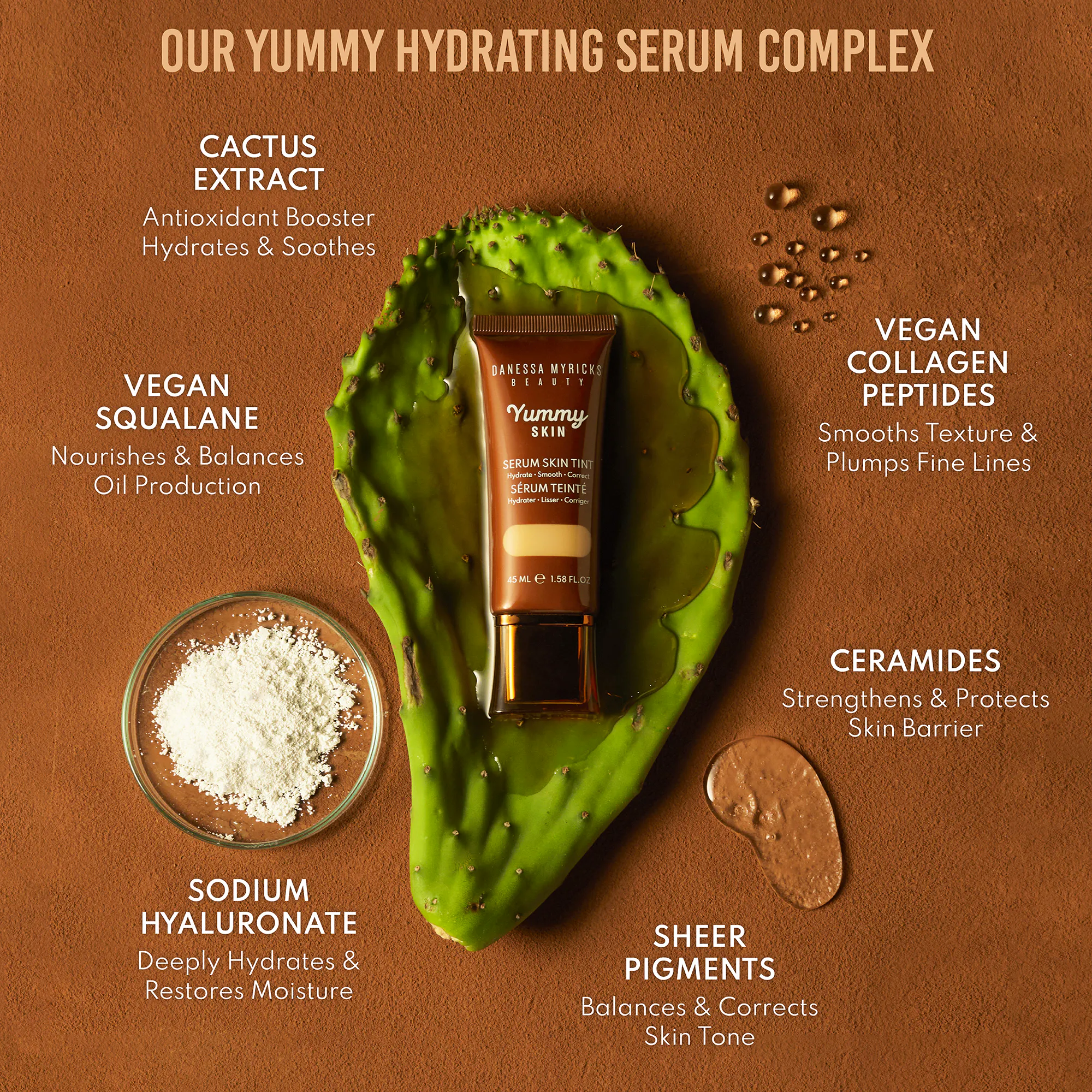 Water/Aqua/Eau, Glycerin, Isododecane, Propylene glycol, calcium sodium borosilicate, hydrogenated polyisobutene, squalane, xylitylglucoside, coco caprylate/caprate, anhydroxylitol, glycerin stearate, sr-hydrozoan polypeptide-1, sodium hyaluronate, ceramide np, opuntia dillenii extract, phytosterols, xylitol, caprylhydroxamic acid, saccharide isomerate, sodium stearoyl glutamate, tocopherylacetate, stearalkonium hectorite, propylene carbonate, betaine, magnesium sulfate, glyceryl caprylate, pentylene glycol, polyglyceryl-4 diisossosterate/polyhydroxystearate/sebacate, sorbitan isostearate, butylene glycol, phosphatidylcholine, hydroxyacetophenone, ethylhexyl hydroxystearate, cetyl peg/PPG-10/1 dimethicone, triethoxycaprylysilane, mica, silica dimethylsyliate, aluminium hydroxide, potassium sorbate, phenoxyethanol, ethylhexyglycerin(+/-): bismuth oxychloride(CI77163), titanium dioxide(77891), iron oxides(CI77491, CI77492, CI77499.