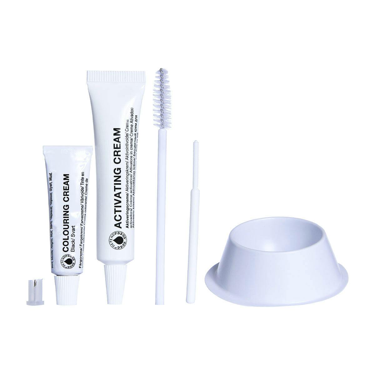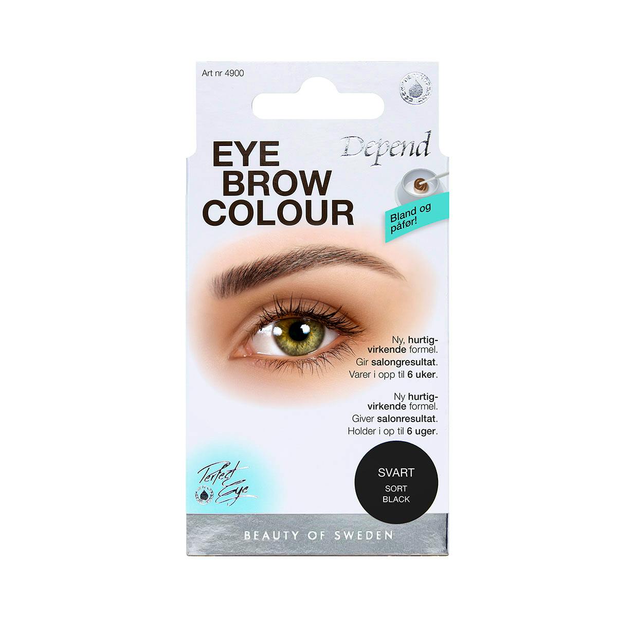Eyebrow Colour Kit Black fra Depend. Ønsker du dig smukke og markede øjenbryn? Så er dette kit fra Depend helt perfekt til dig. Kittet indeholder 5 gram farvecreme, 10 ml. aktiveringscreme, 1 blandepind, 1 blandekop, 1 påføringsbørste og 1 nål. Derudover medfølger der selvfølgelig en udførlig brugsanvisning, der guider dig hele vejen til et lækkert resultat. Dette er farven Black. Farven holder i op til 6 uger.