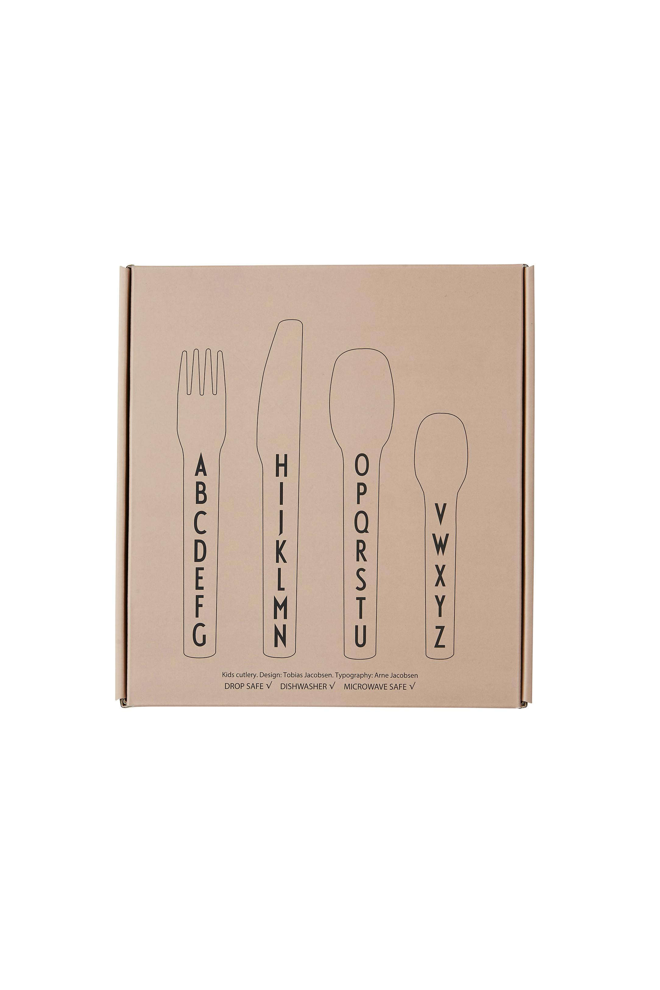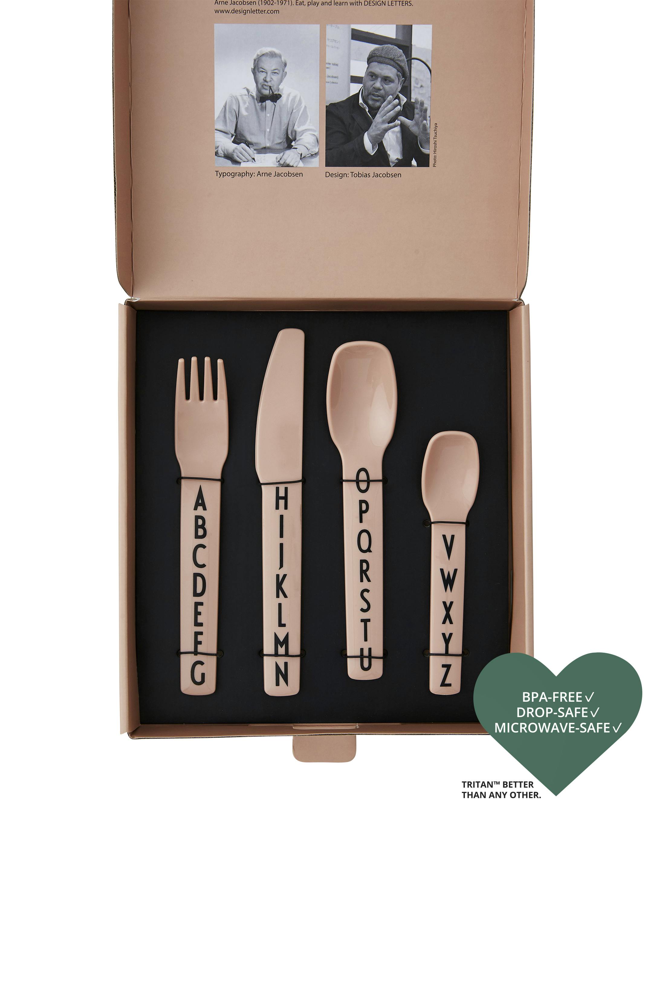 Design Letters Kids Cutlery Nude er et sæt med fire børnebestik i en elegant og moderne stil.
