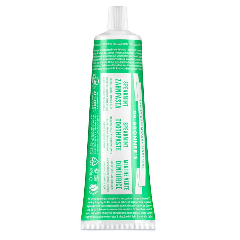Toothpaste Spearmint fra Dr. Bronner's er en fantastisk tandpasta, der vil give dig en frisk og ren mundhule. Denne tandpasta er perfekt til dig, der ønsker at opretholde en sund mundhygiejne og samtidig nyde en behagelig smag af spearmint. Med en vægt på 140 g er denne tandpasta ideel til daglig brug. Den er nem at anvende og efterlader dine tænder og tandkød rene og sunde. Med sin naturlige formel er denne tandpasta skånsom mod dine tænder og tandkød, samtidig med at den effektivt fjerner plak og bekæmper dårlig ånde. Toothpaste Spearmint er velegnet til alle, der ønsker en frisk og ren mundhule. Den kan bruges af både børn og voksne og er ideel til daglig tandbørstning. Med dens forfriskende smag af spearmint vil du nyde at børste dine tænder og opnå en langvarig frisk ånde. Dr. Bronner's Toothpaste Spearmint er den perfekte tandpasta til dig, der ønsker en naturlig og effektiv løsning til at opretholde en sund mundhygiejne. Med dens unikke formel og forfriskende smag vil du opleve en behagelig tandbørstning og efterlade din mundhule frisk og ren hele dagen.