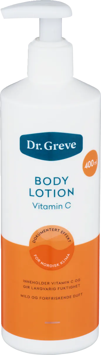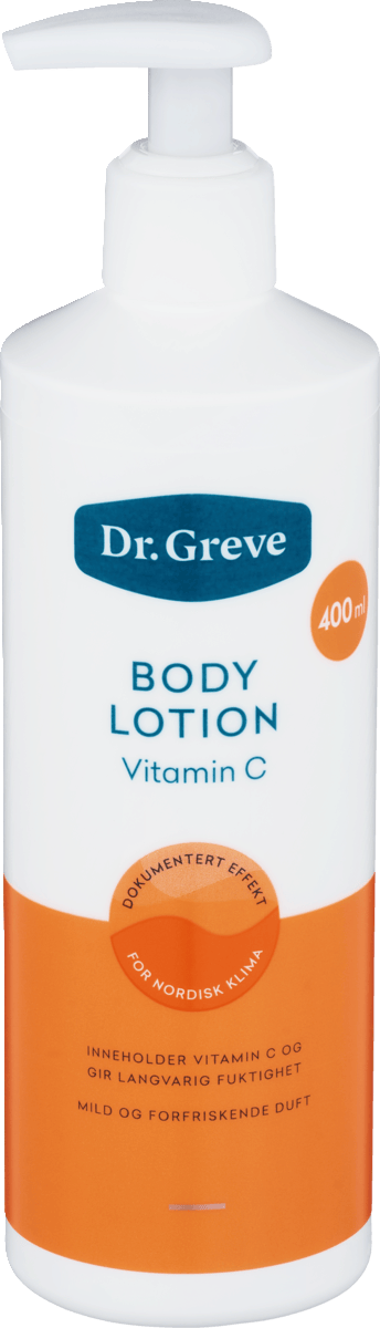 Giv huden den pleje, den fortjener, med en let og nærende bodylotion med vitamin C. Udviklet til at give langvarig fugt – uden at føles klistret. Perfekt efter badet for en blød og sund hud. Dr. Greve Body Lotion er dermatologisk testet på sensitiv hud og har en mild duft.