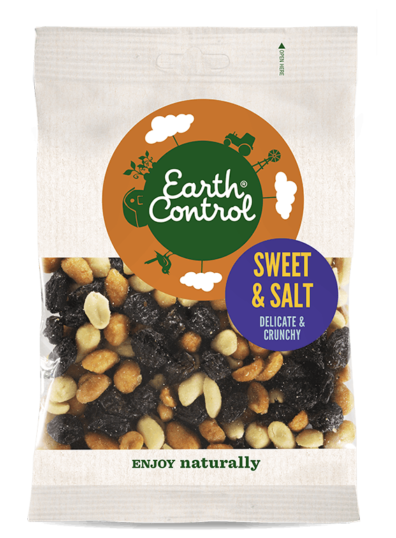 Forkæl dig selv med et sundt alternativ, når du bliver snacksulten. Denne pose Sød & Saltet Mix fra Earth Control er super lækker. Posen indeholder rosiner, honningristede peanuts samt saltede peanuts. Det er altså en lækker sammensætning af det søde og det salte. Posen indeholder 200 gram.