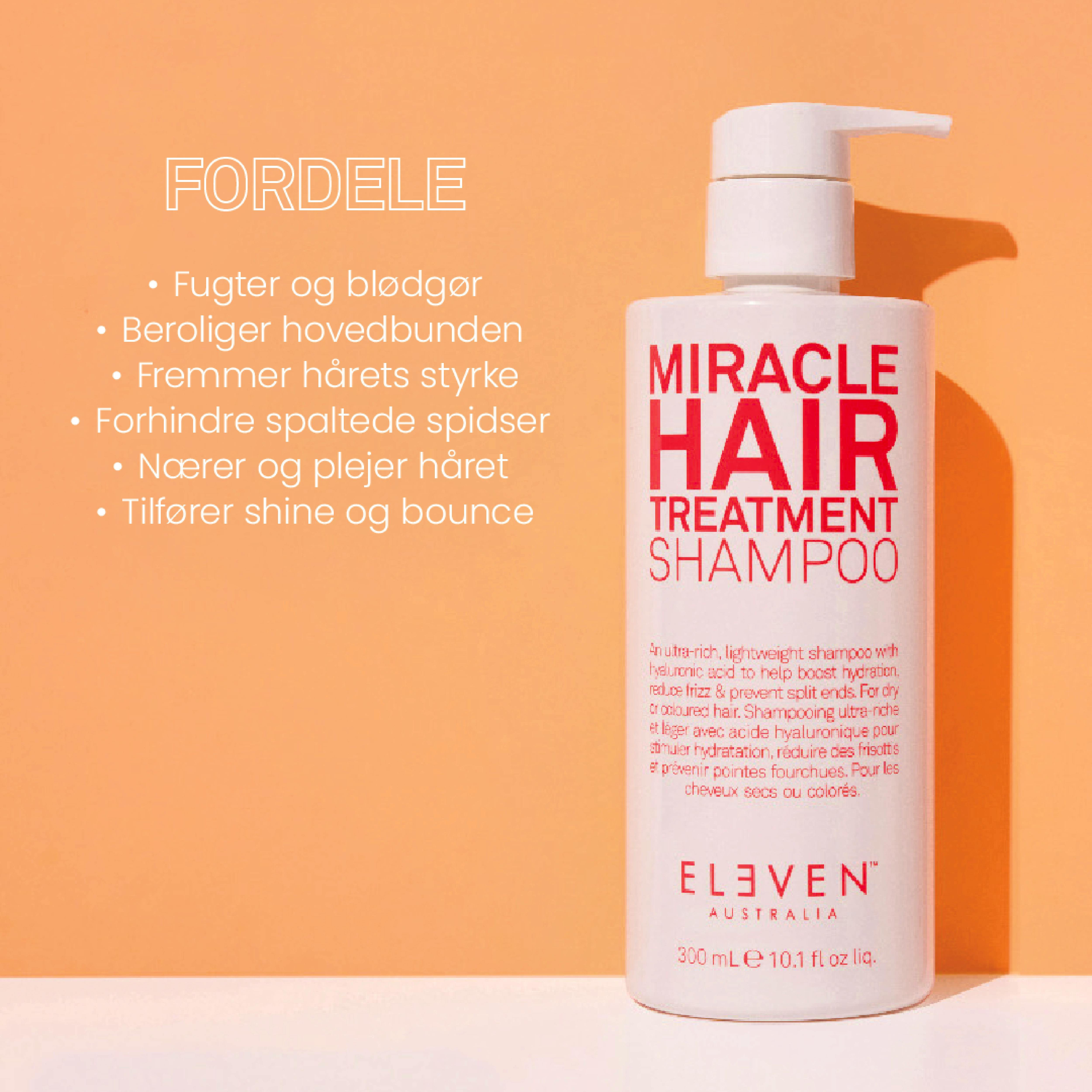 MIRACLE HAIR TREATMENT SHAMPOO er en ultrarig, let shampoo med hyaluronsyre, som hjælper med at øge fugtniveauet, reducere krus og forebygge spaltede spidser.