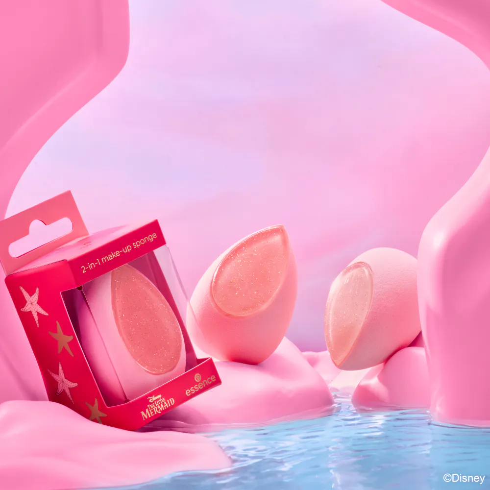Gør din skønhedsrutine dobbelt så sjov med essence 2-i-1 makeupsvampen 01 Double The Magic, der er inspireret af Disneys Den lille havfrue.