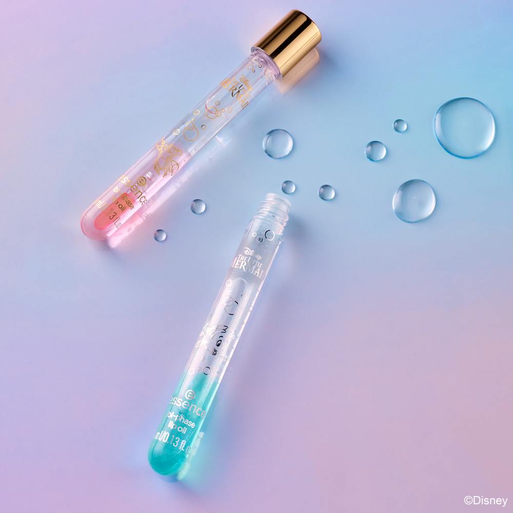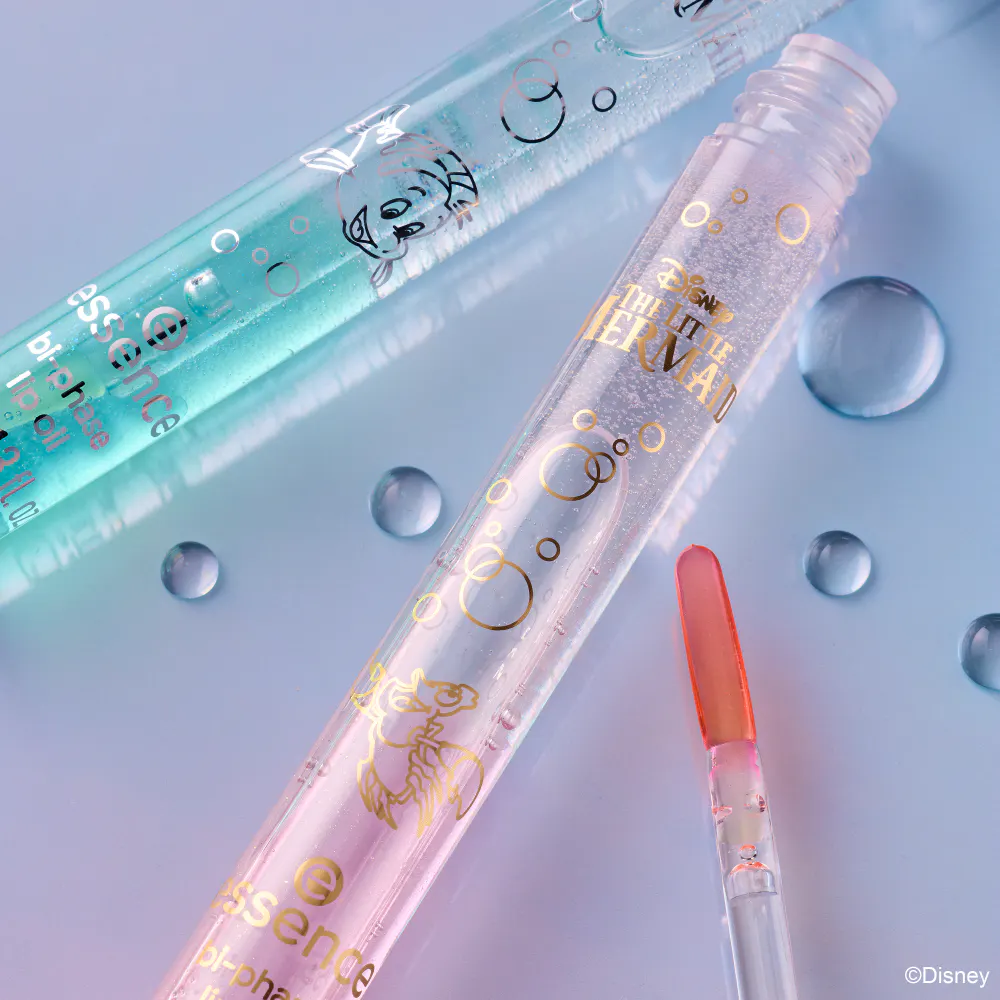 Dyk ned i blank perfektion med essence bi-phase lip oil 02 Swim Towards Your Dreams, der er inspireret af Disneys Den lille havfrue.