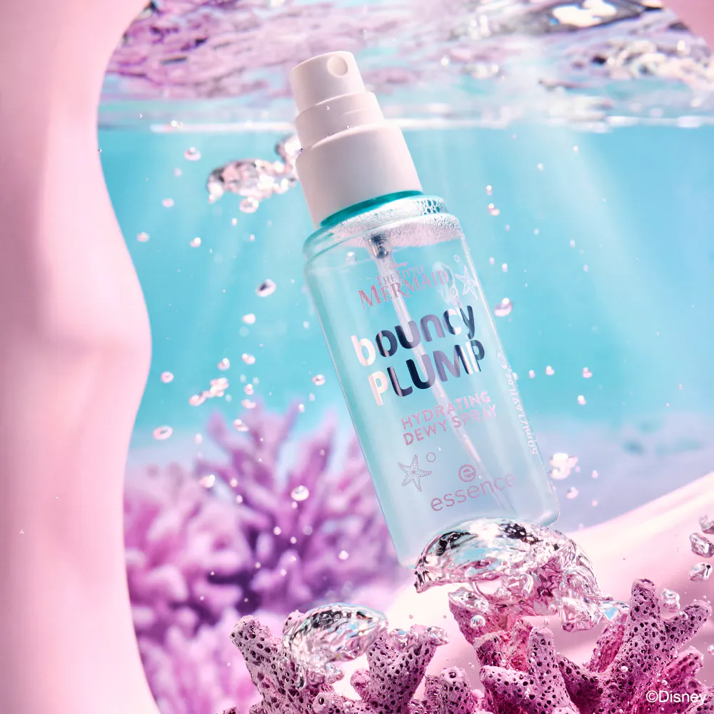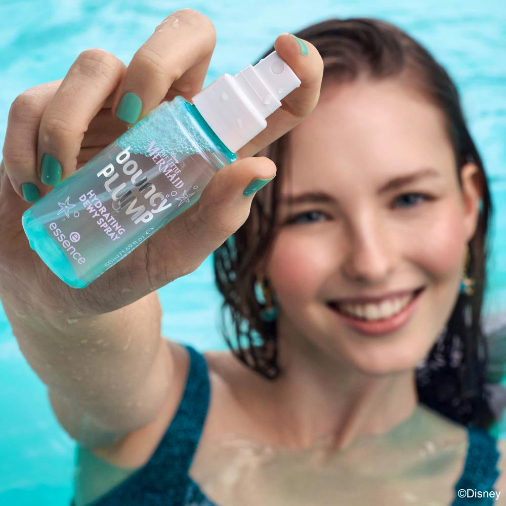 Få din makeup til at holde med essence bouncy PLUMP HYDRATING DEWY SPRAY 01 Make A Splash inspireret af Disneys Den lille havfrue.