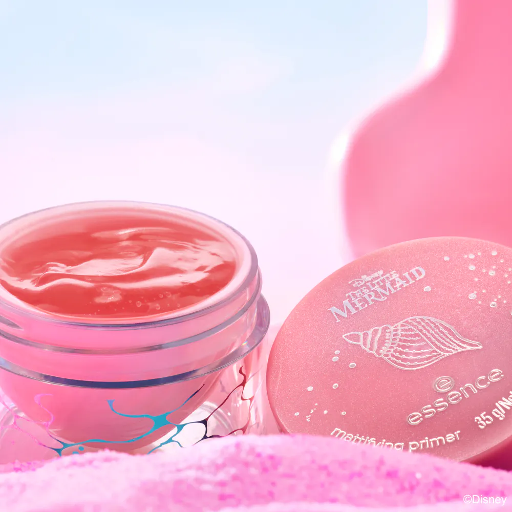 Gør dig klar til et yndigt havfruelook med essence matterende primer 01 Made In The Ocean, der er inspireret af Disneys Den lille havfrue! Denne silkeagtige gel-mousseprimer opfrisker huden med en øjeblikkeligt kølende fornemmelse og skaber en jævn overflade, der er perfekt til makeup. Den lyserøde tekstur bliver gennemsigtig under påføring og skaber en naturlig mat, ikke-klæbrig base, der føles vægtløs. Dens gennemsigtige krukke har et fortryllende indvendigt design med en muslingeskal, der indfanger havets ånd, mens primeren giver din teint et friskt og sløret look, som var du lige kommet op af vandet.