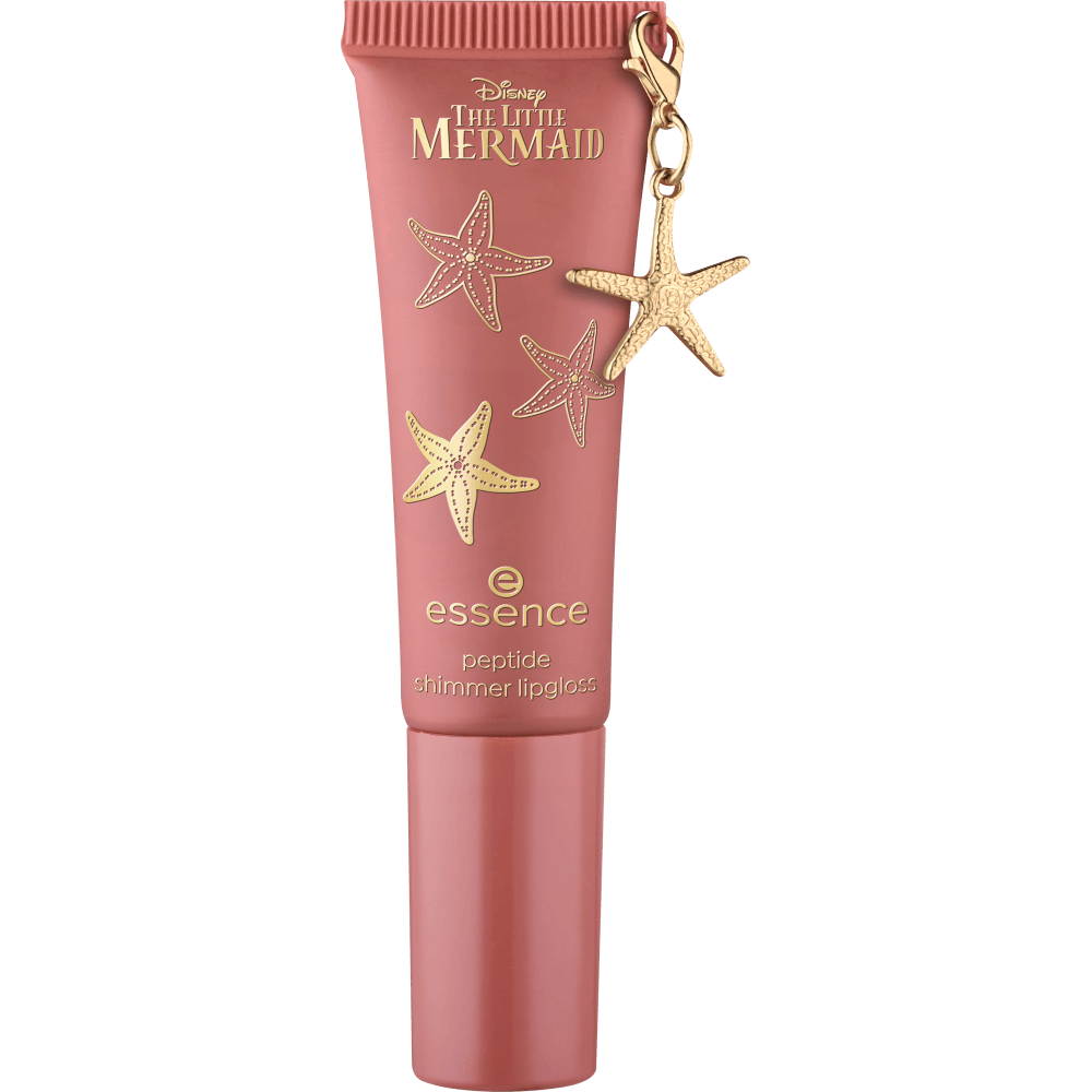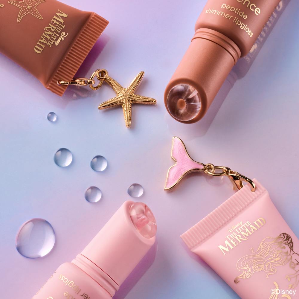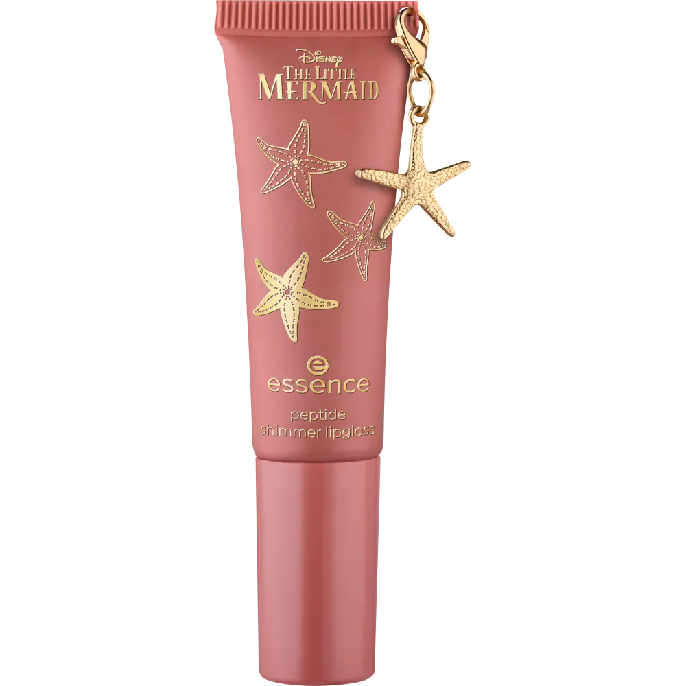 Giv dine læber fortryllende glød med essence peptide shimmer lipgloss 02 Seaside Romance, der er inspireret af Disneys Den lille havfrue.