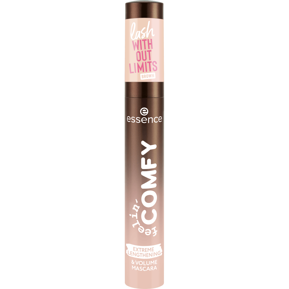 Det er tid til at pakke dine vipper ind i komfort! essence feelin’ comfy lash WITHOUT LIMITS BROWN EXTREME LENGTHENING & VOLUME MASCARA 01 Lash Cocoon skaber smukt forlængede vipper med en naturlig, fyldig finish.