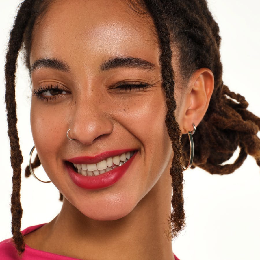 INGREDIENTS: ETHYLHEXYL PALMITATE, SYNTHETIC WAX, ZEOLITE, MICA, STEARYL DIMETHICONE, BIS-DIGLYCERYL POLYACYLADIPATE-2, DIISOSTEARYL MALATE, OCTADECENE, HELIANTHUS ANNUUS SEED CERA (HELIANTHUS ANNUUS (SUNFLOWER) SEED WAX), HELIANTHUS ANNUUS (SUNFLOWER) SEED OIL, TOCOPHEROL, PENTAERYTHRITYL TETRA-DI-T-BUTYL HYDROXYHYDROCINNAMATE, KAOLIN, ASCORBYL PALMITATE, CI 15850 (RED 6), CI 15850 (RED 7), CI 77742 (MANGANESE VIDLET), CI 77891 (TITANIUM DIDXIDE).