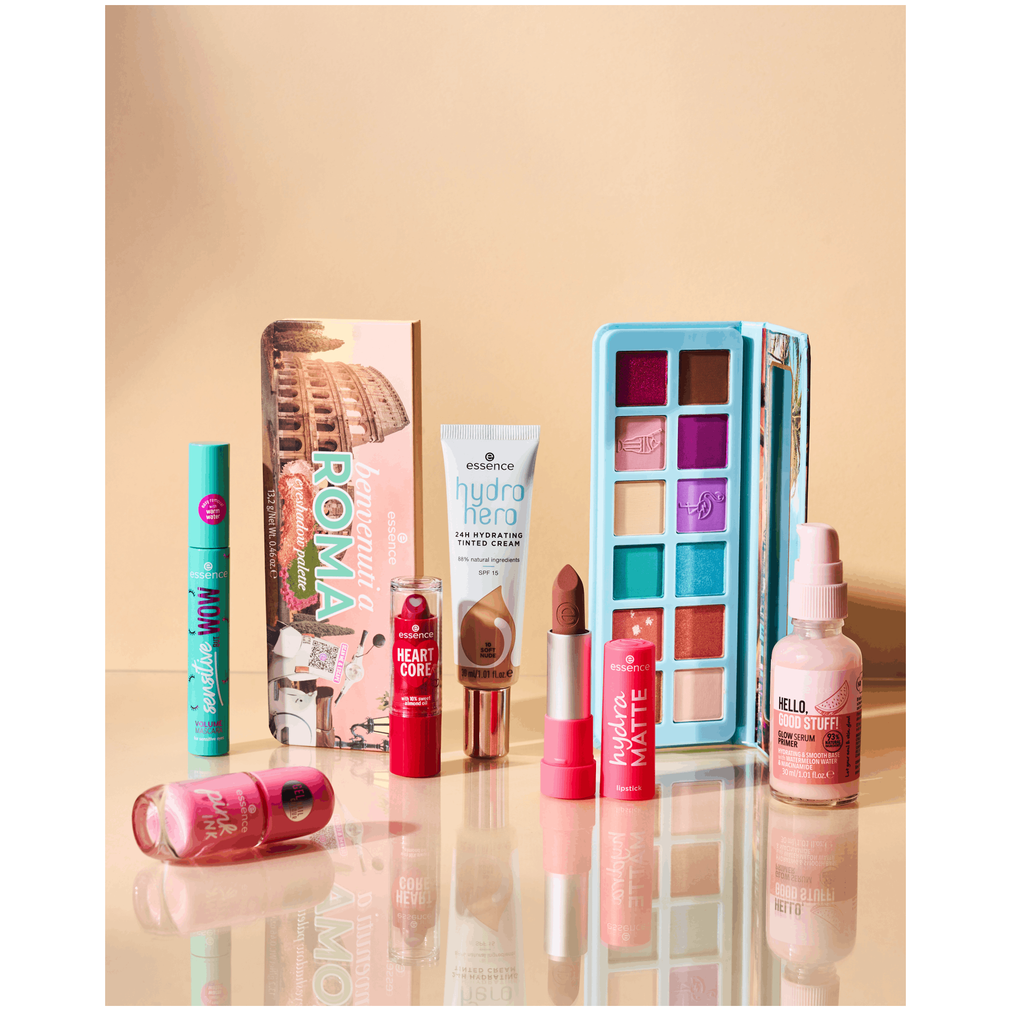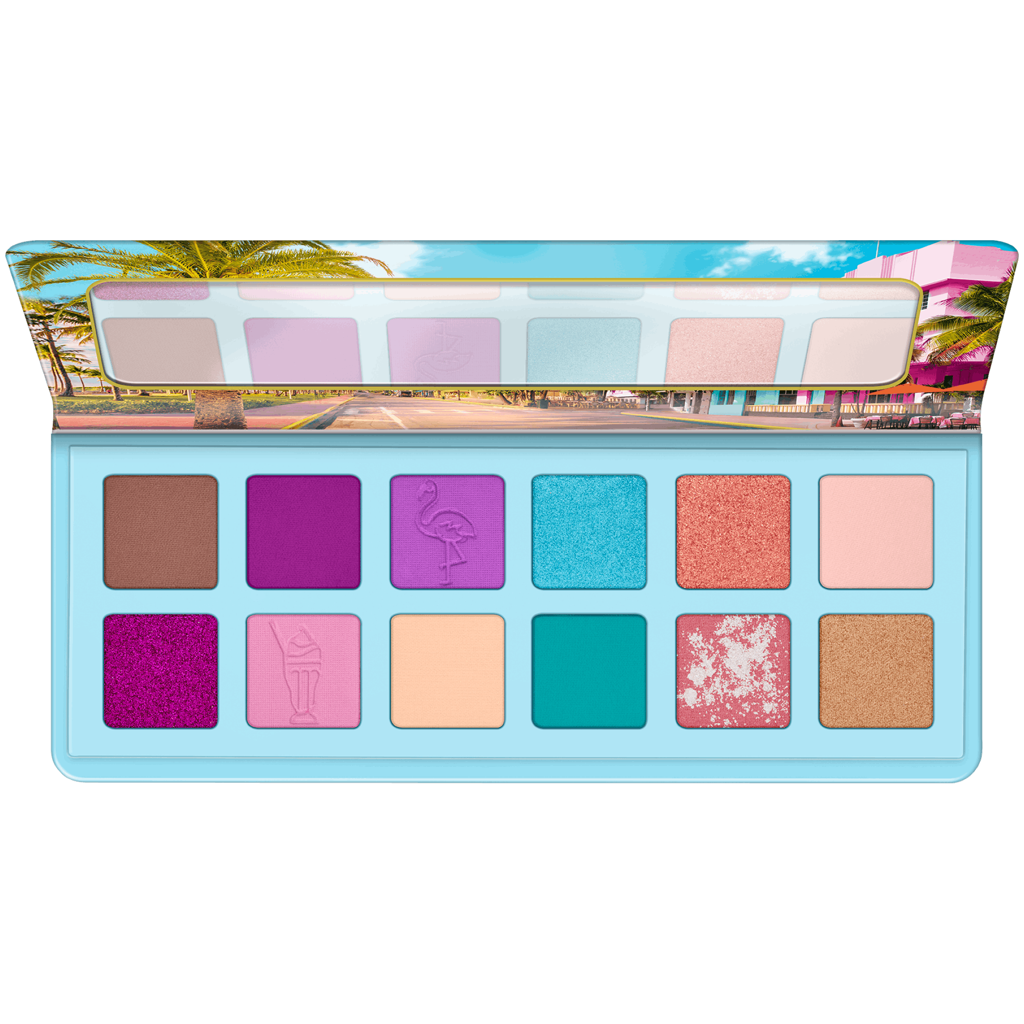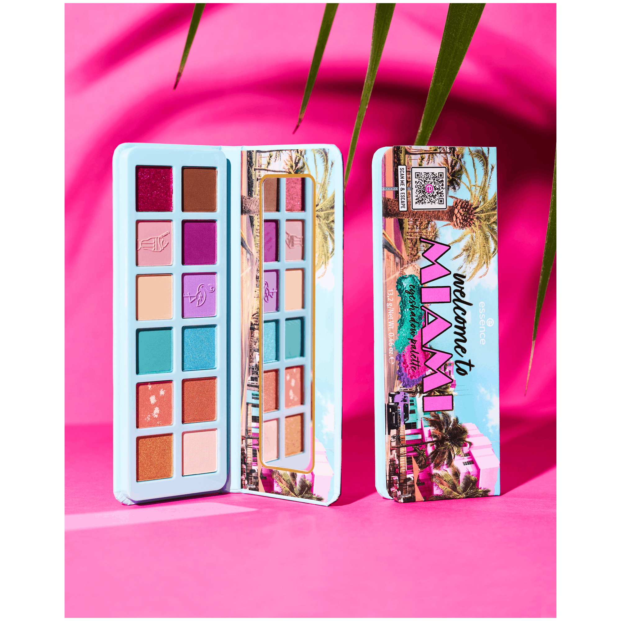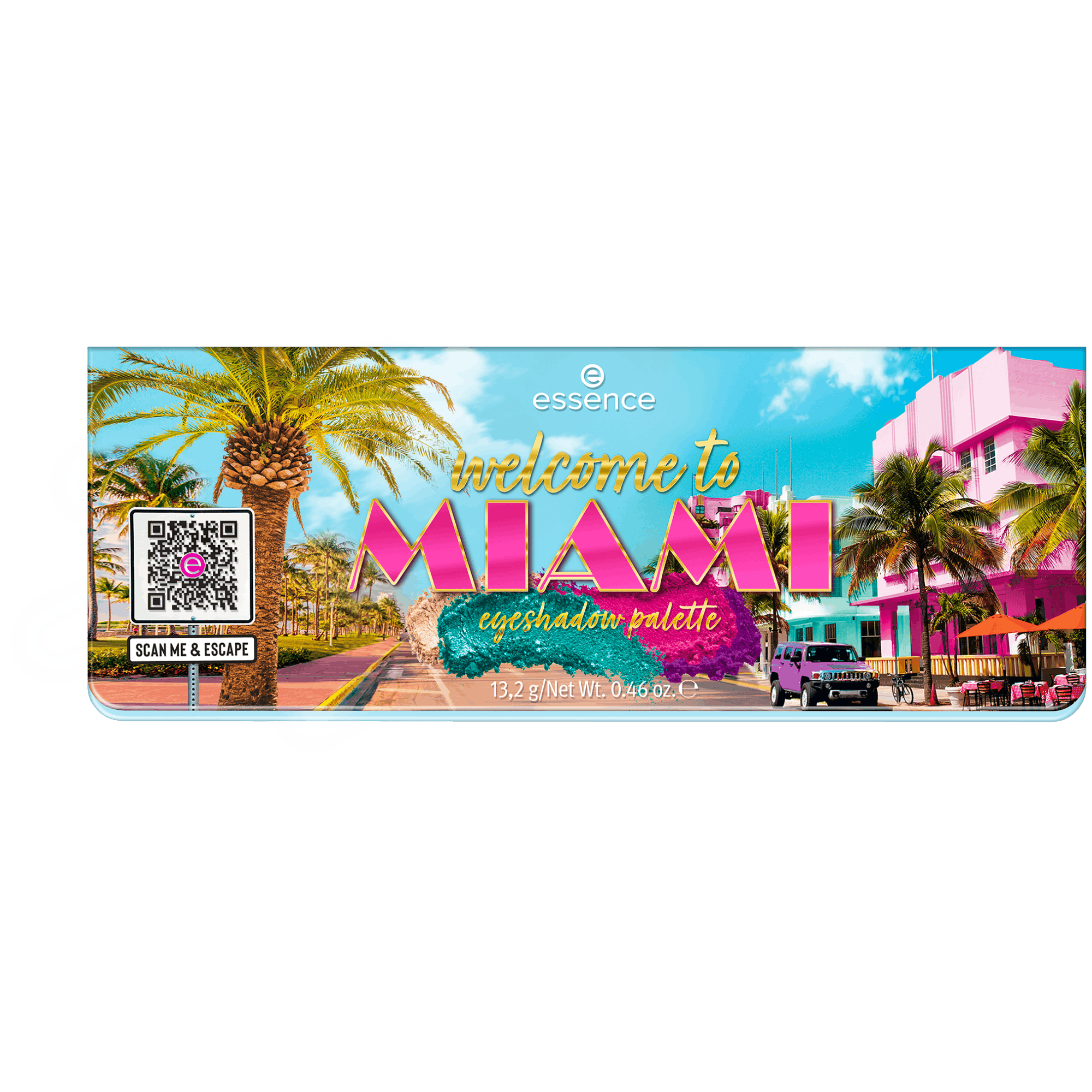 Øjenskyggepaletten “welcome to MIAMI” garanterer solskinsvibes og friske, levende farver. Den indeholder 12 højt pigmenterede øjenskygger med nuancer inspireret af Miami Beach, såsom neutrale, pink violette og turkisgrønne nuancer. Teksturen er nem at anvende og blande, hvilket giver mat til metallisk finish med et højt farveudbytte. Og ovenikøbet får du en QR-kode på emballagen, som afslører ekstra overraskende detaljer.