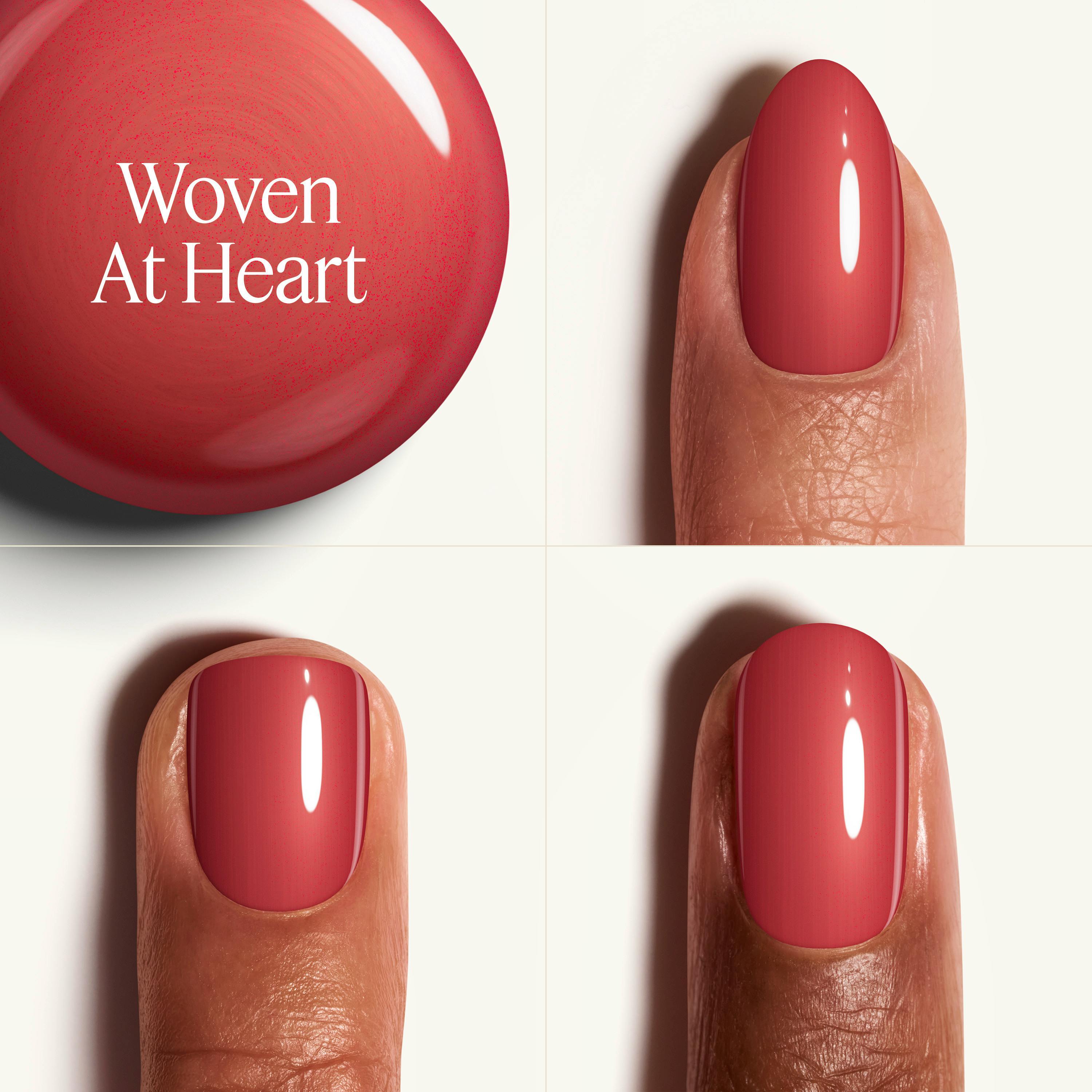woven at heart er en lys rød neglelak med rosa undertoner og ekstremt lang holdbarhed.