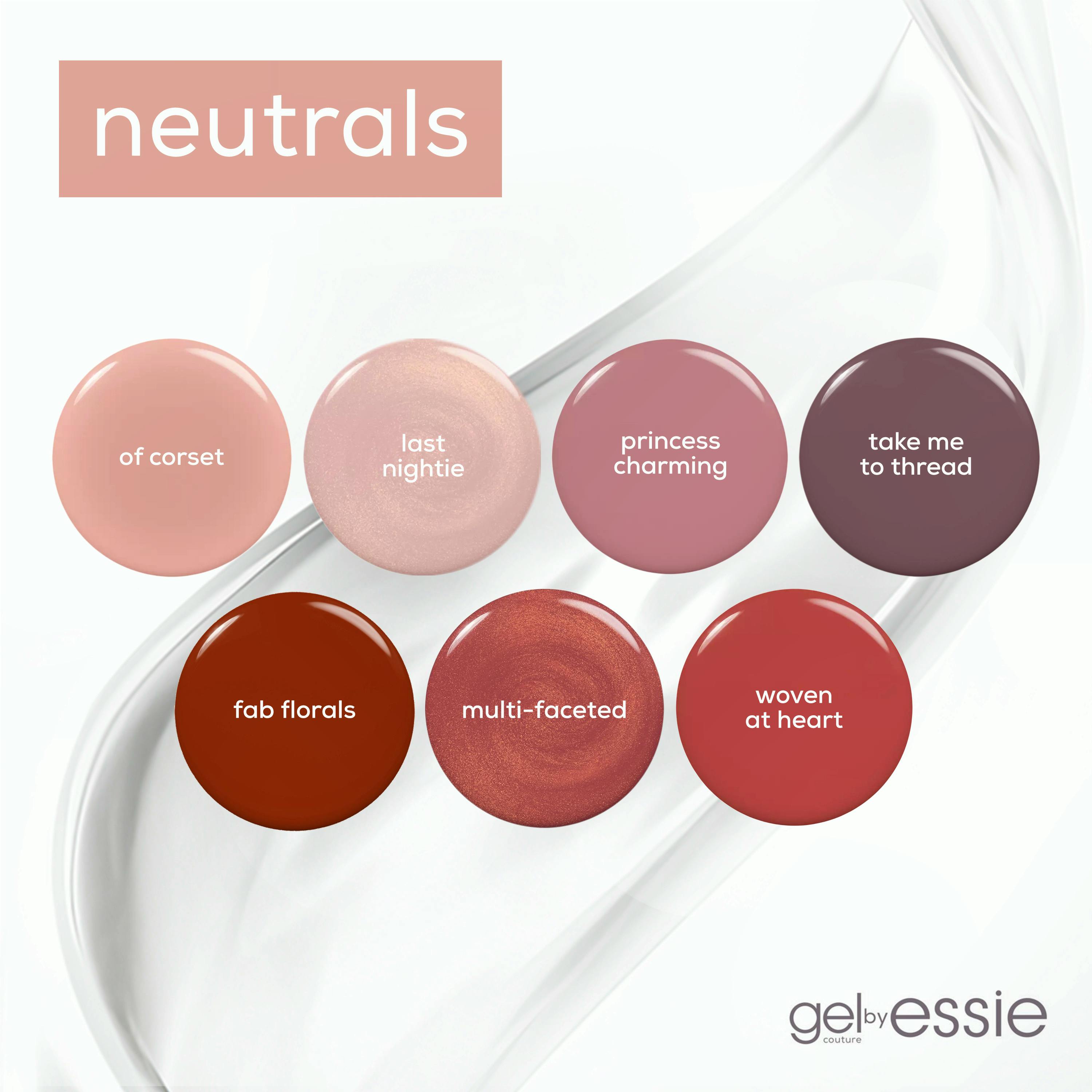 essie gel couture er et 2-trinssystem som kombinerer farve og top coat. et alternativt hjemme-gel-neglelaksystem som skubber til grænserne for langtidsholdbar neglelak med op til 15 dages gel-lignende holdbarhed*. Formlen indeholder den nye flex.e.-teknologi som modvirker at neglelakken skaller af samt tre glansgivende egenskaber for at opnå en spejlblank glans.