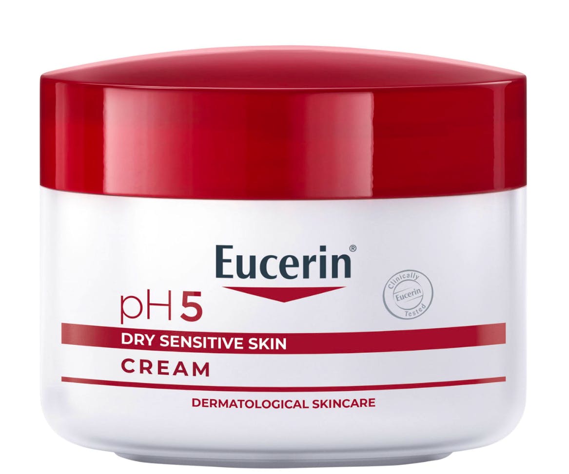Eucerin pH5 Cream er en skånsom fugtighedscreme, der er udviklet til at give langvarig fugt og beskyttelse til sensitiv hud.