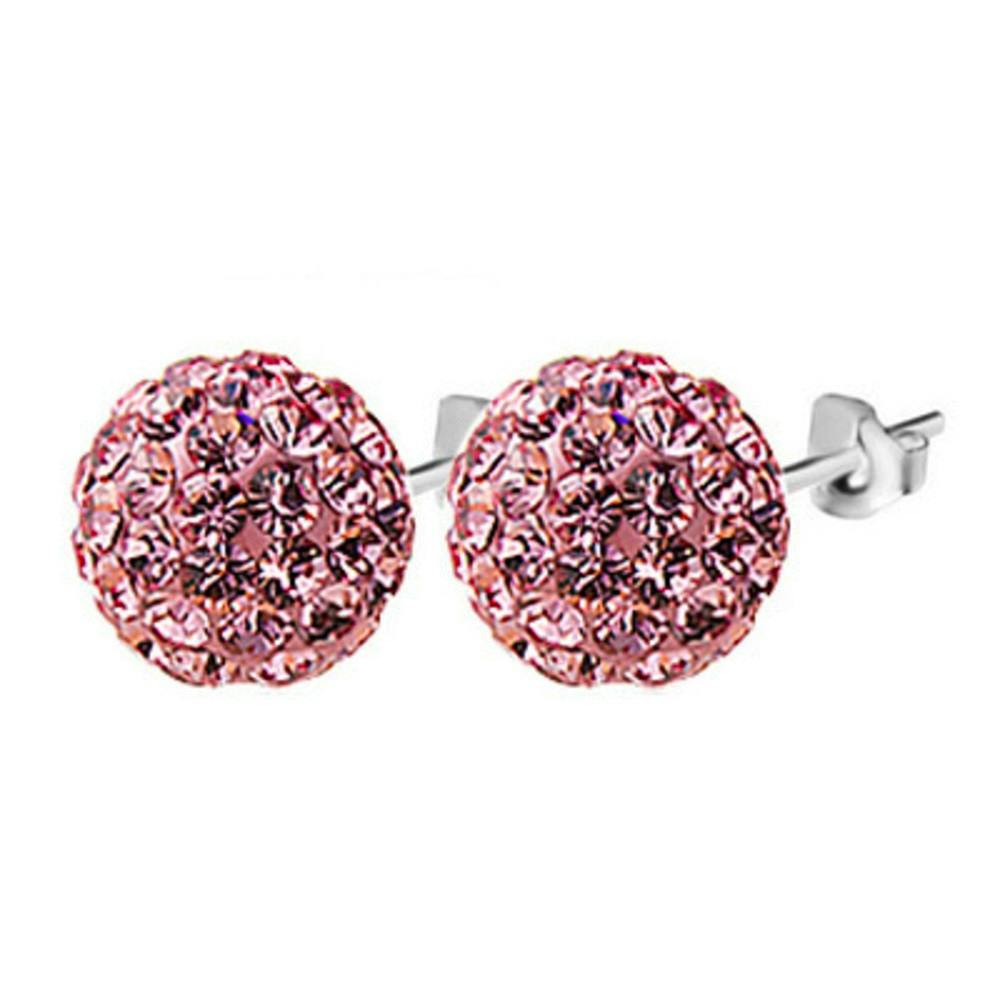 Disse smukke funklende ørestikker med rosa kugler giver et sødt og feminint look.