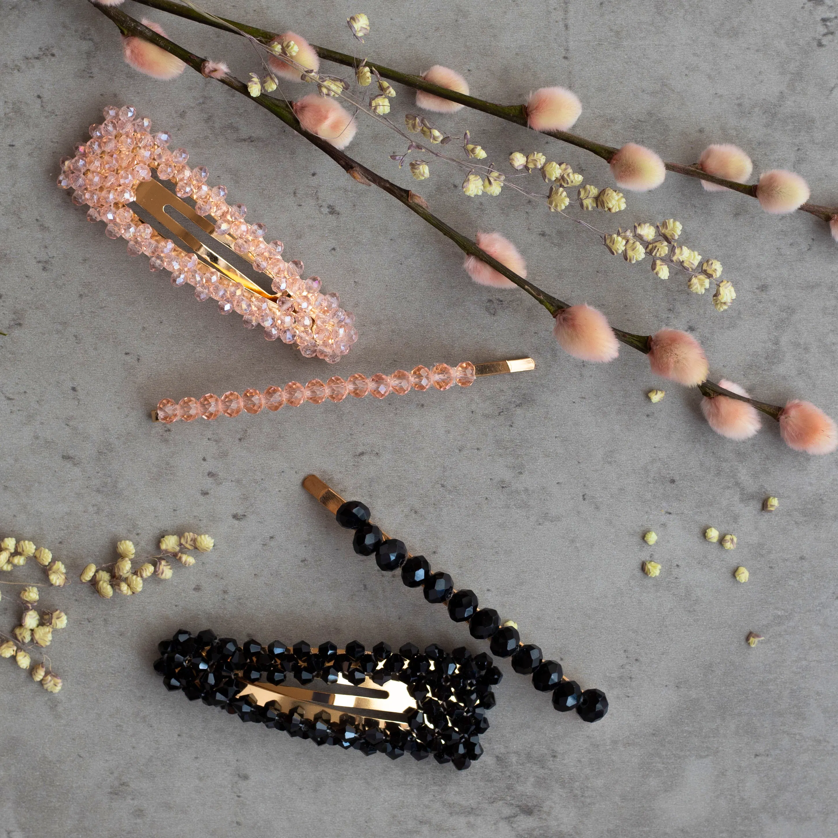 Everneed Pretty Bubba Glam Perlespænde i versionen Sun Kissed er et af de trendy perlespænder med gyldne perler og et klikspænde i guldlook. Hårspændet måler 6,5 cm og kan bruges på mange måder i håret.