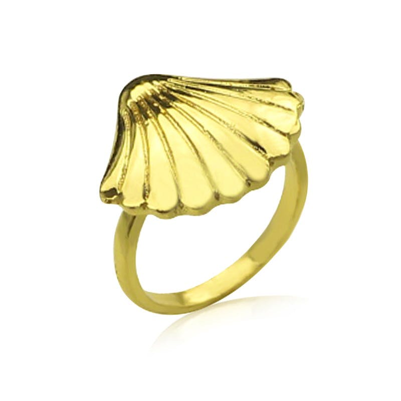 Smuk guldfarvet ring fra Everneed som er pyntet med et motiv af en muslingskal, gør ringen simpel men virkelig elegant.