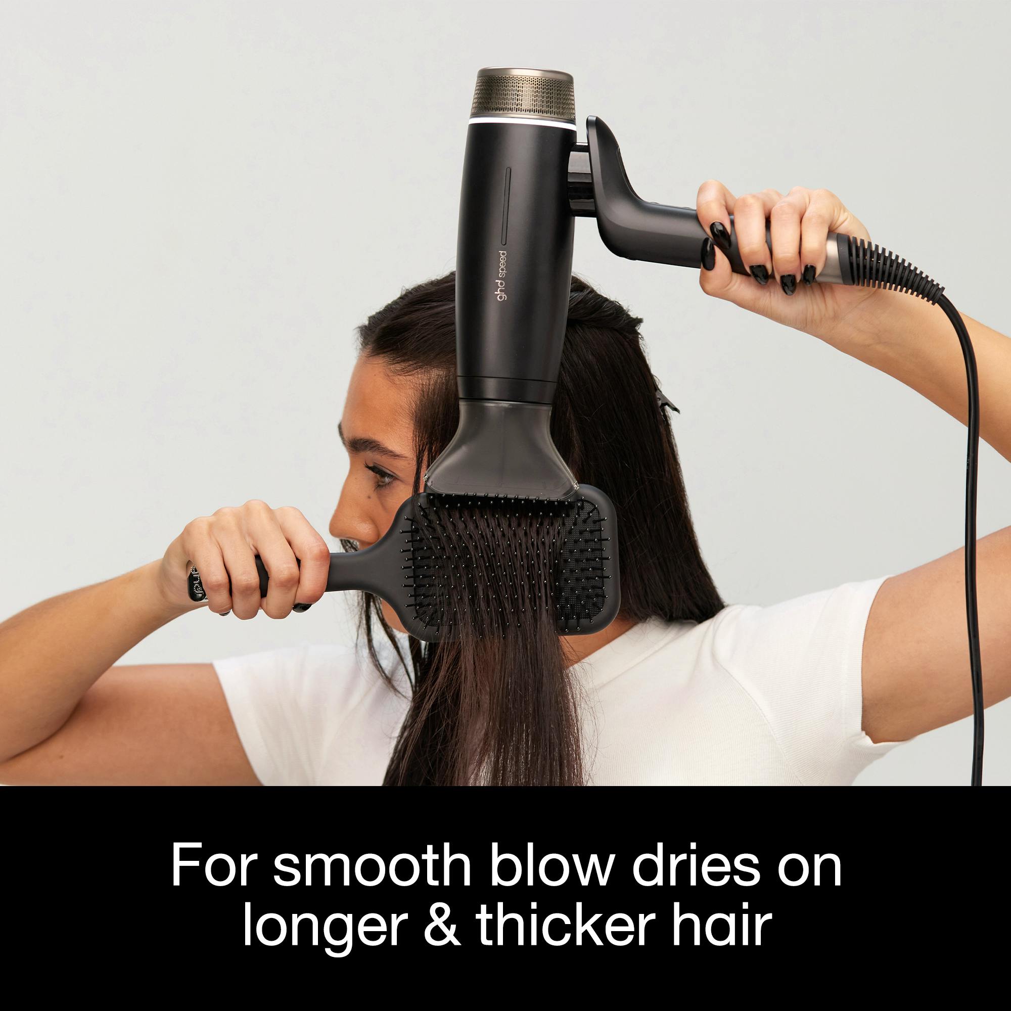 Tilbehørets glatte, konturerede indre form skaber en uafbrudt, kraftfuld luftstråle, der giver dig maksimal kontrol gennem en bred og kraftig luftstrøm for glat styling, mens det gennemsigtige ydre lag afslører den avancerede ghd halo™ dobbelte luftstrømsteknologi indeni.