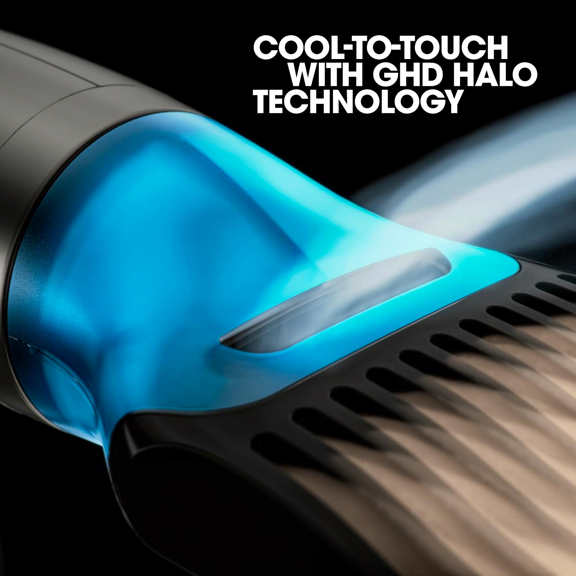 Vores banebrydende ghd halo™ teknologi forhindrer overophedning ved langvarig brug og beskytter både dit hår og dit værktøj gennem hele din stylingrutine. Den konturerede inderside sikrer en jævn, kraftfuld luftstrøm, mens et intelligent ventilationssystem holder hårkammen kølig at røre ved² for komfortabel håndtering.