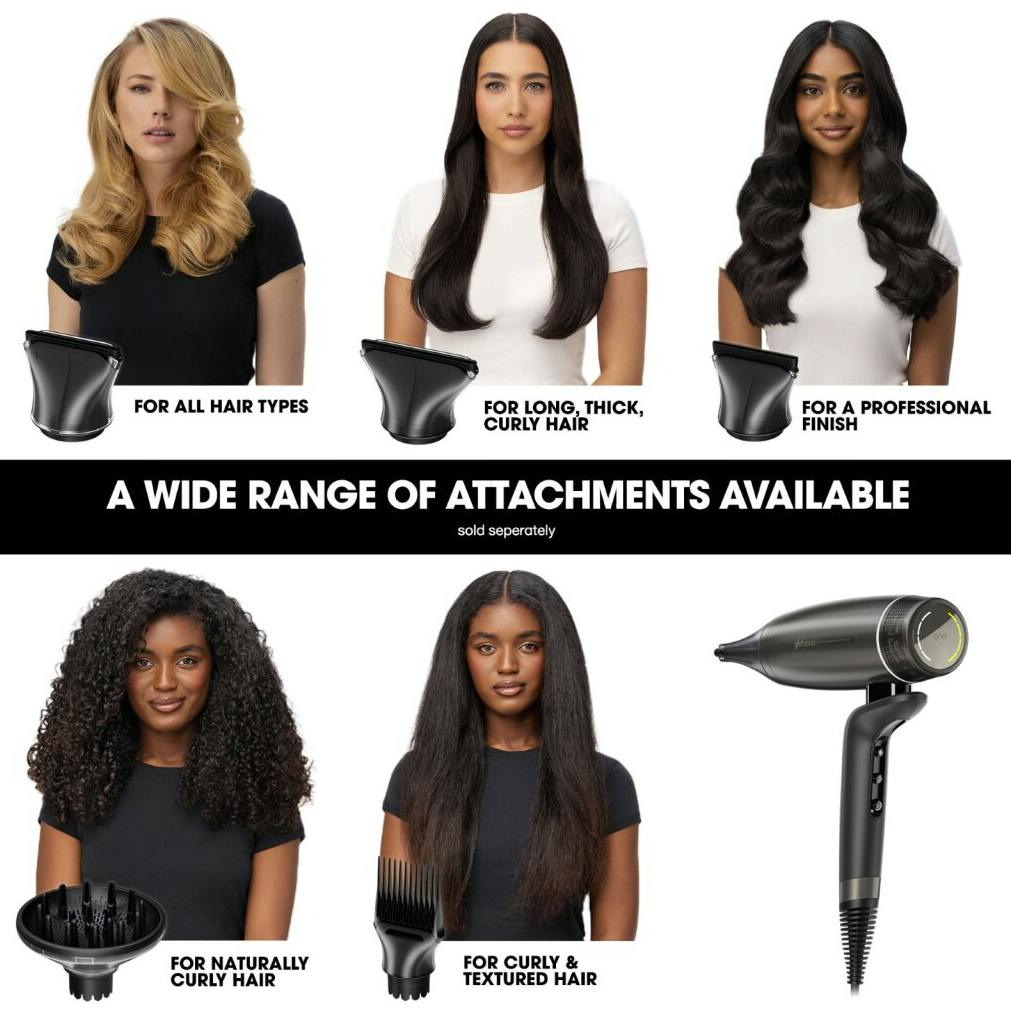Med fire varmetrin, fire hastighedsindstillinger, en koldluftknap og intelligent hukommelse, der husker og fastholder dine senest anvendte indstillinger, når kontrollåsknappen er aktiveret. Det giver dig mulighed for at fortsætte præcis, hvor du slap, så du kan opnå personligt tilpassede, hurtige og nemme føntørringer, der holder hele dagen.