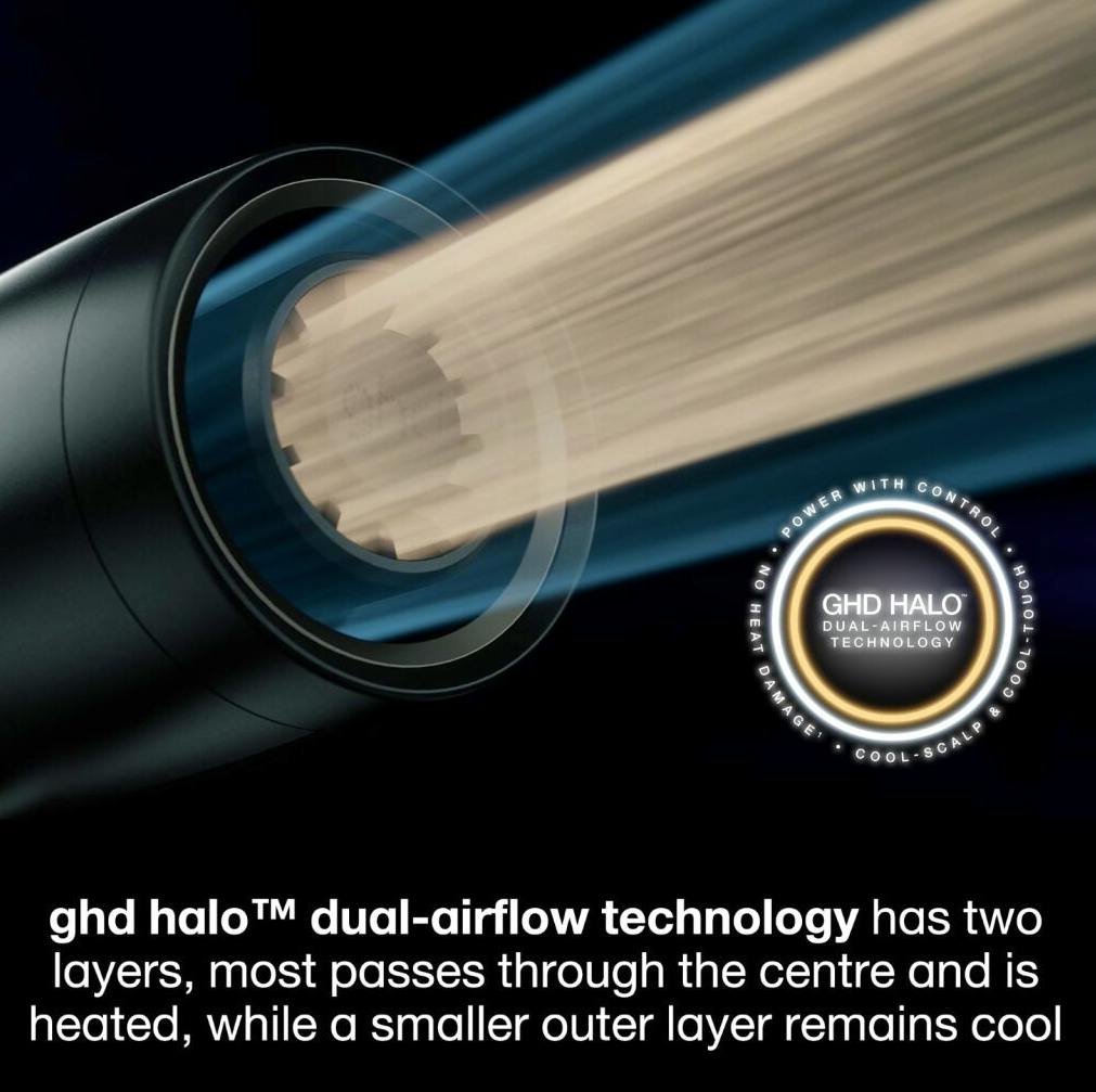 Mens de fleste mærker skruer op for varmen for hurtigere tørring, holder vi det køligt – med ghd Halo™ dual-airflow-teknologi, der sænker hårtemperaturen med 20 °C. En ring af kølig luft omslutter den centralt opvarmede luftstrøm, så du kan komme tættere på hårrødderne end nogensinde før, samtidig med at hovedbunden beskyttes – for en køligere, blidere og ultrahurtig tørring. Tørrens rør og tilbehøret forbliver kølige at røre ved – selv ved den højeste varmeindstilling, så du nemt kan holde din ghd Speed, som du vil, enten i håndtaget eller på det slanke rør, for ubesværet styling. Det gør den til den perfekte hårtørrer for en glat finish og øget volumen.