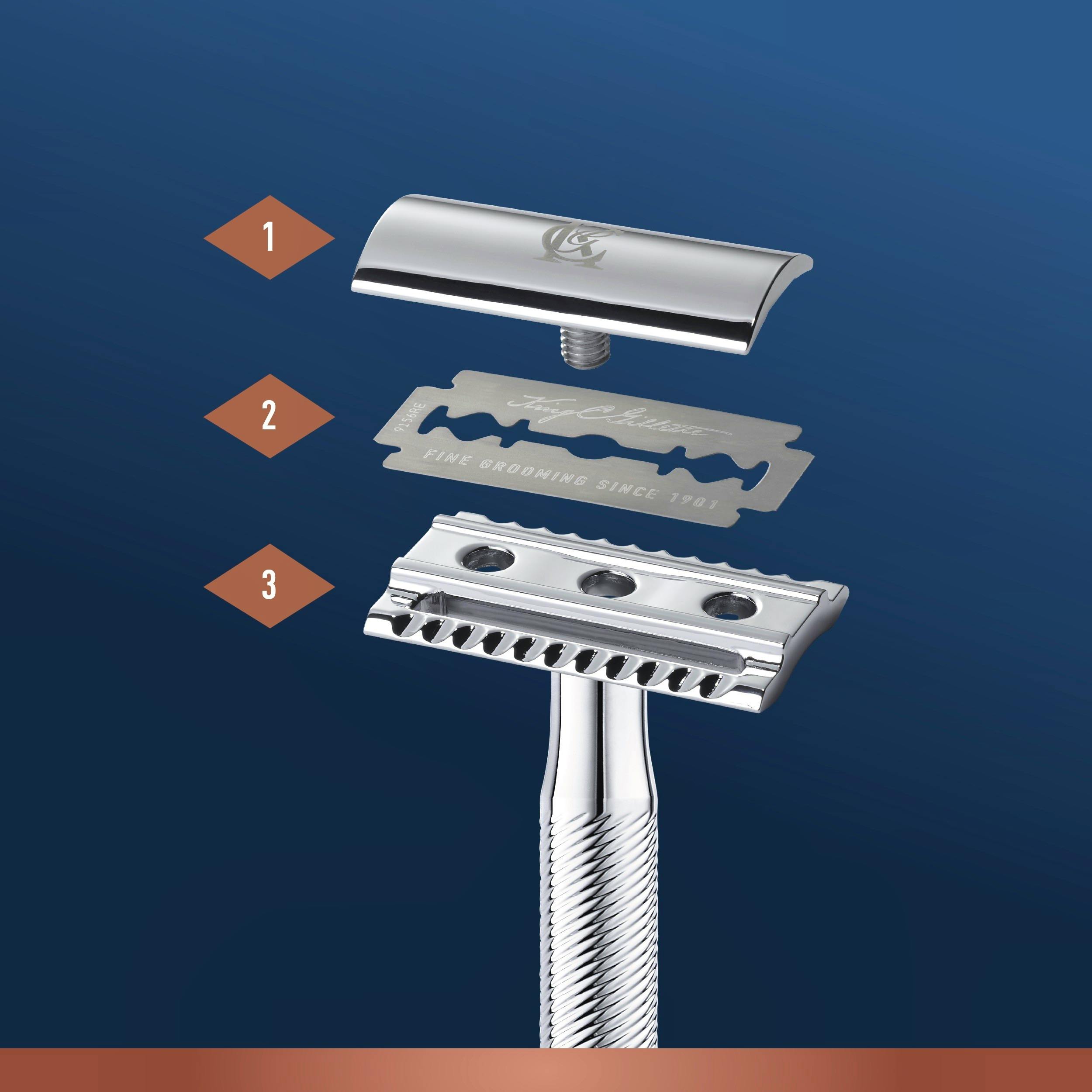 King C Double Edge Razor & Blades fra mærket King C Gillette er et fantastisk produkt, der giver dig en tæt og behagelig barbering.