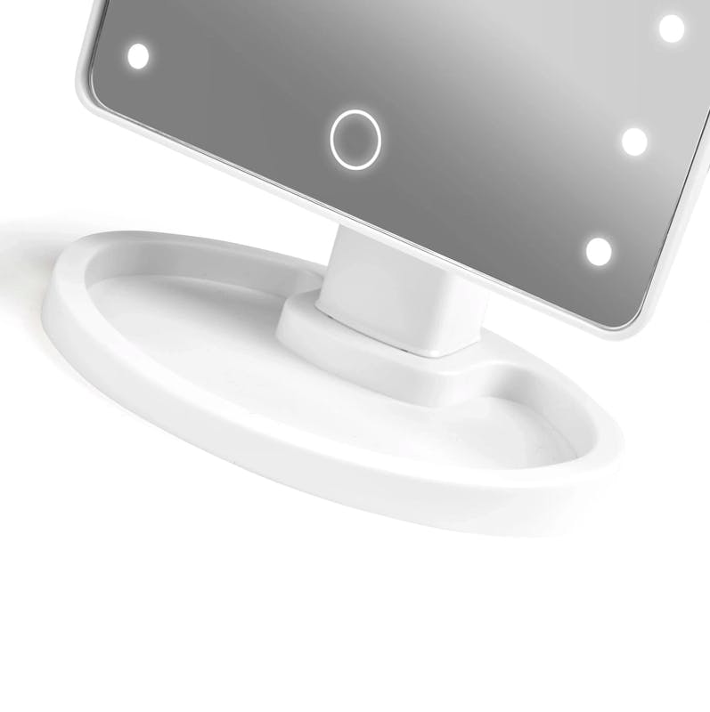 Hollywood Mirror with Touch & USB-C fra Gillian Jones er et elegant og funktionelt tilbehør, der løfter din skønhedsrutine til nye højder. Dette stilfulde spejl har et strømlinet design med en berøringsfølsom overflade, som gør det nemt at justere belysning og indstillinger. Med den indbyggede USB-C port får du en moderne detalje, der giver dig mulighed for at oplade dine enheder, mens du gør dig klar.