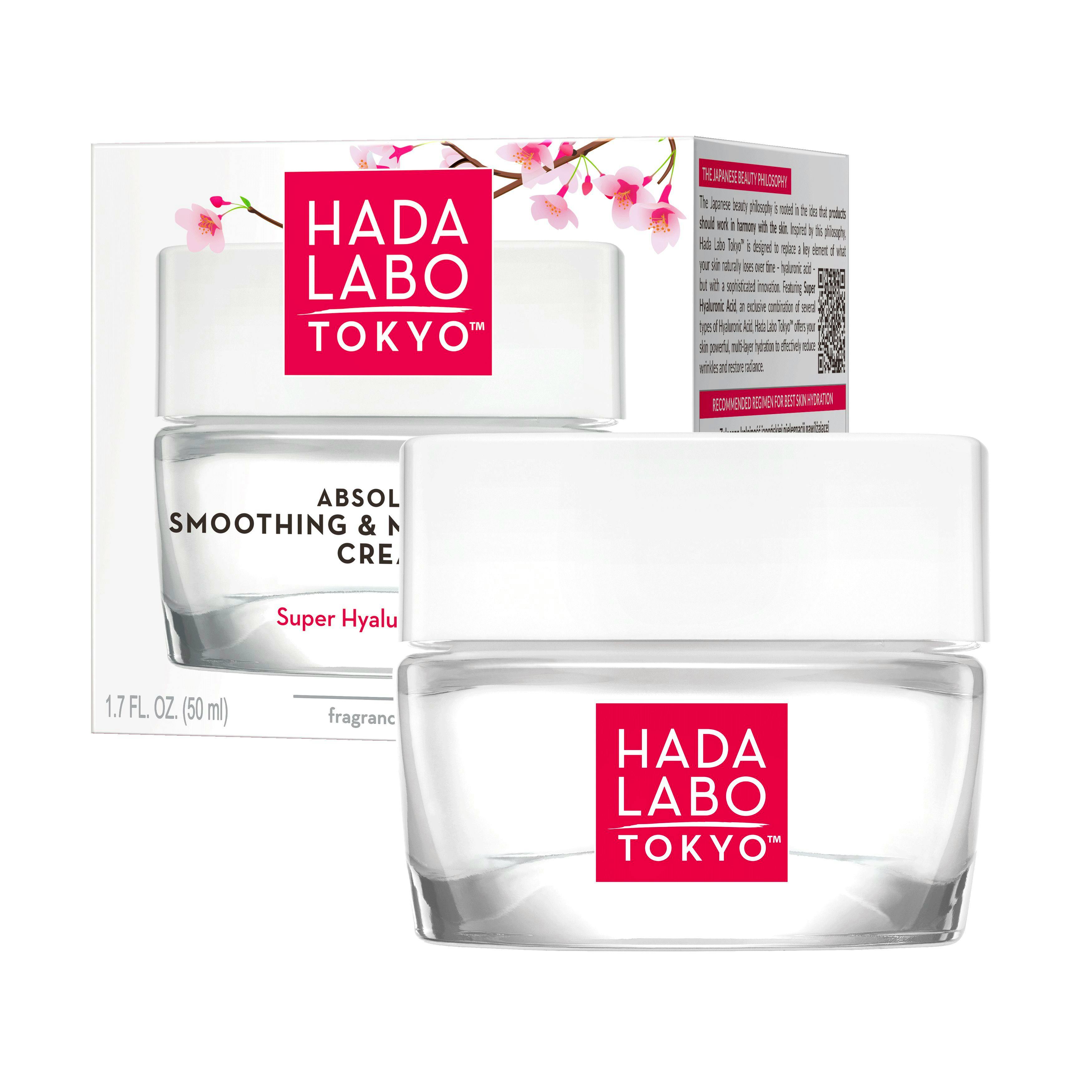 Absolute Smoothing & Moisturising Cream fra Hada Labo er en luksuriøs tilføjelse til din hudplejerutine, der er skabt til at give intens fugt og en glat overflade til din hud.