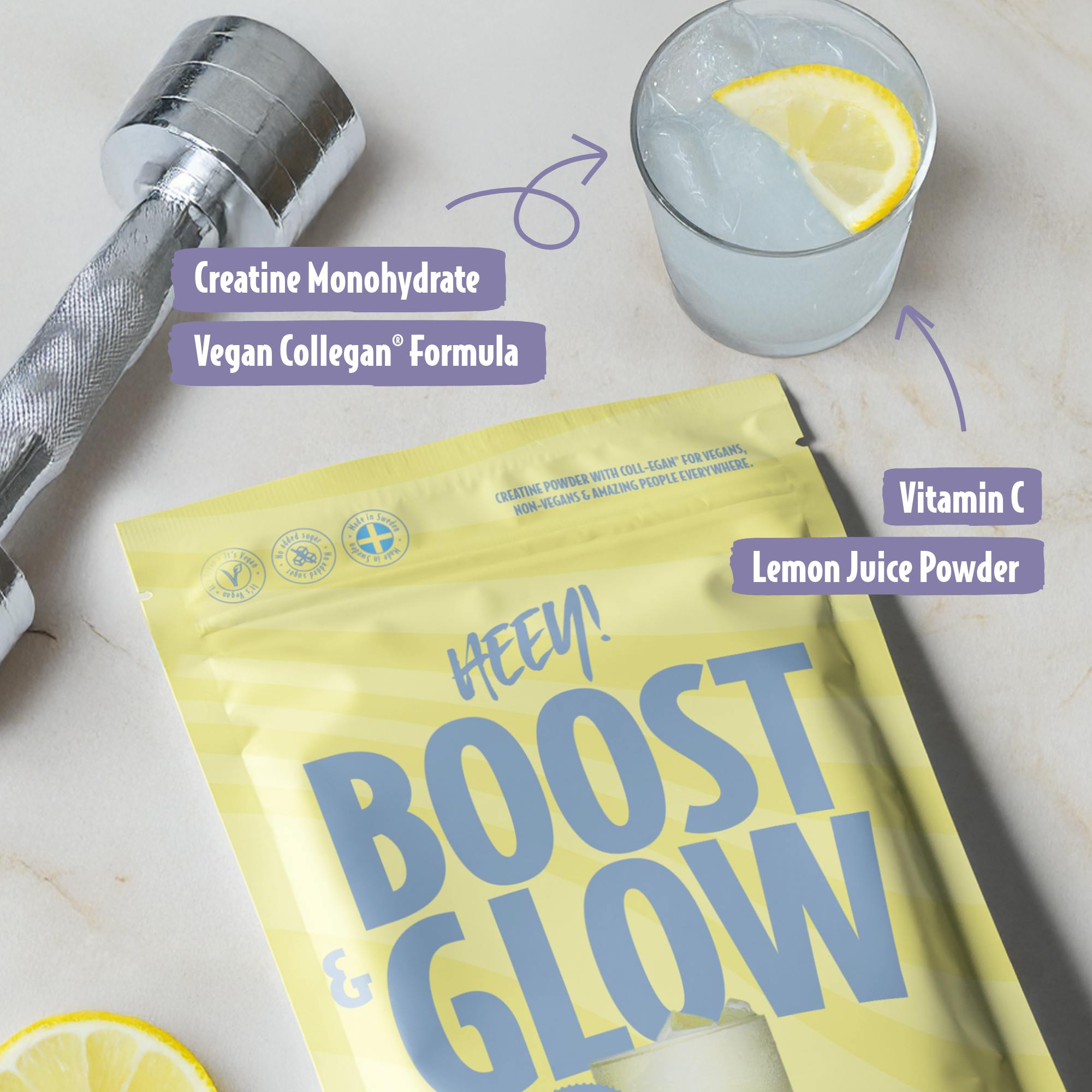 Heey! Boost & Glow Creatine + Coll-egan® Lemon