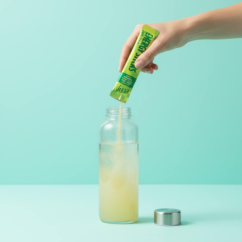 Ingen spild. Ingen dåse. Bare riv op, bland med vand og nyd. Smartere og billigere end energidrik på dåse – mere funktionelt end kaffe.