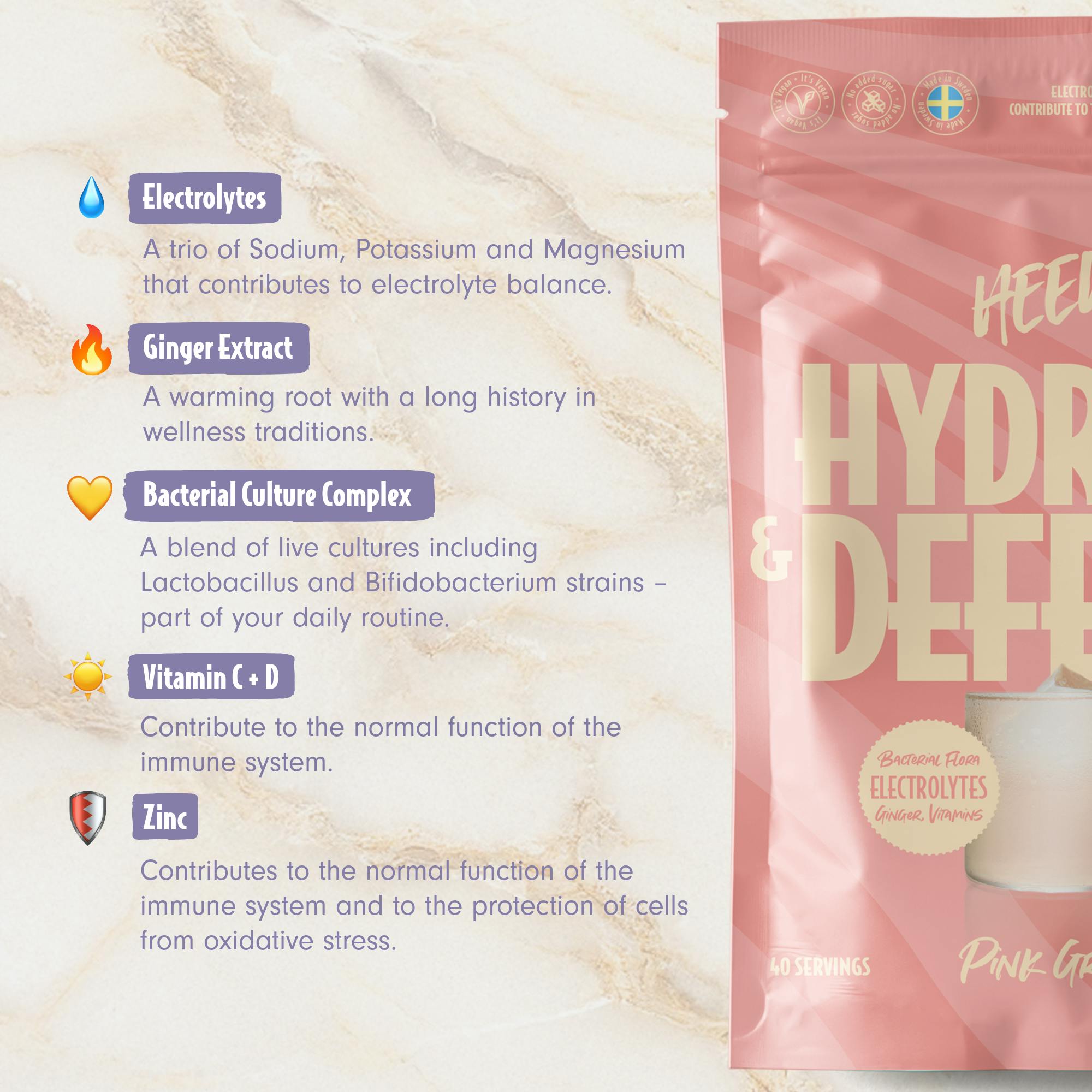Heey! Hydrate & Defend er ikke bare et elektrolyttilskud – det er et innovativt produkt, der kombinerer væskebalance med immunstøtte i en unik Dual Action-formel. Perfekt til den sundhedsbevidste person, der ønsker at pleje både kroppens funktion og forsvar!